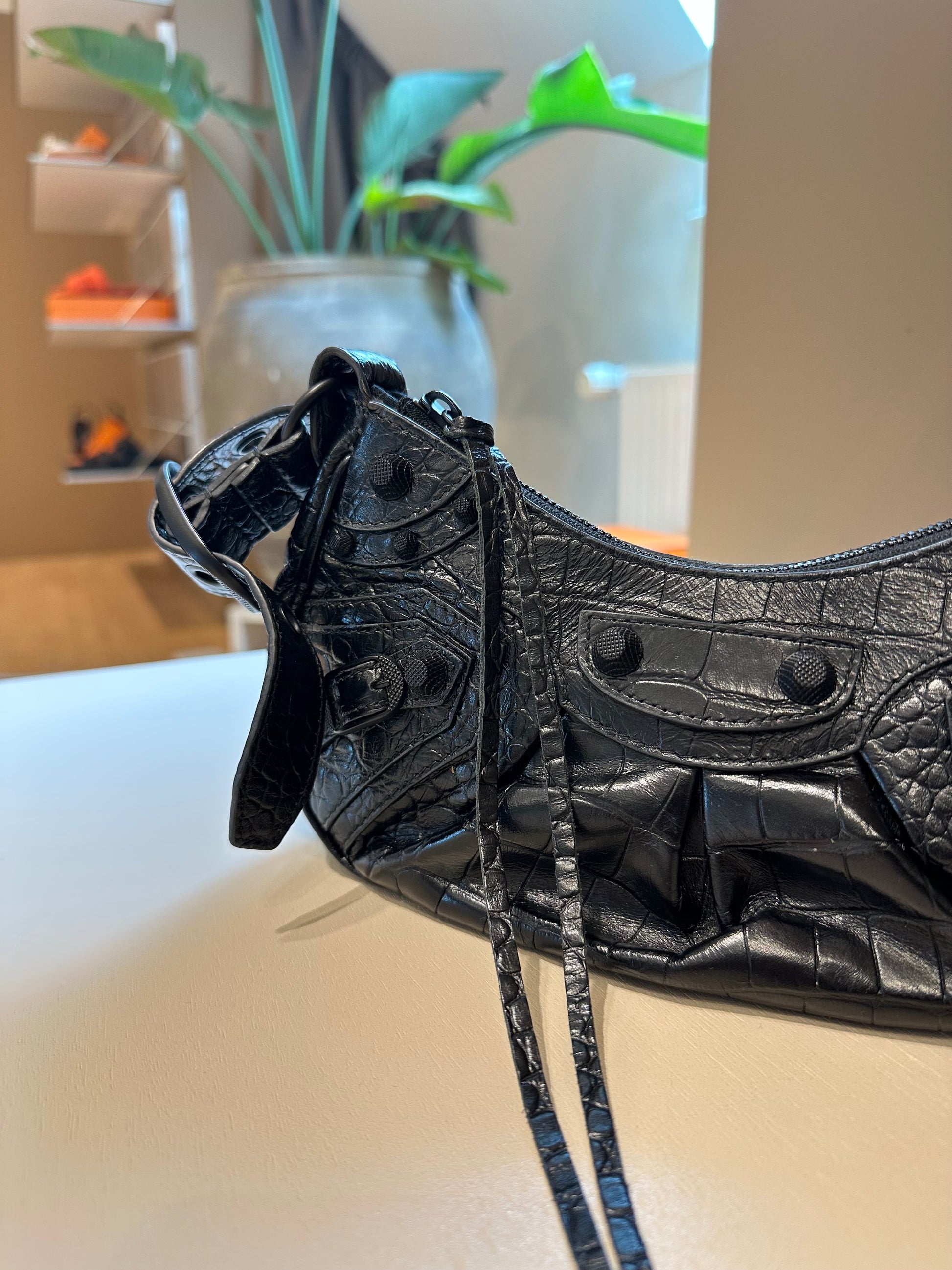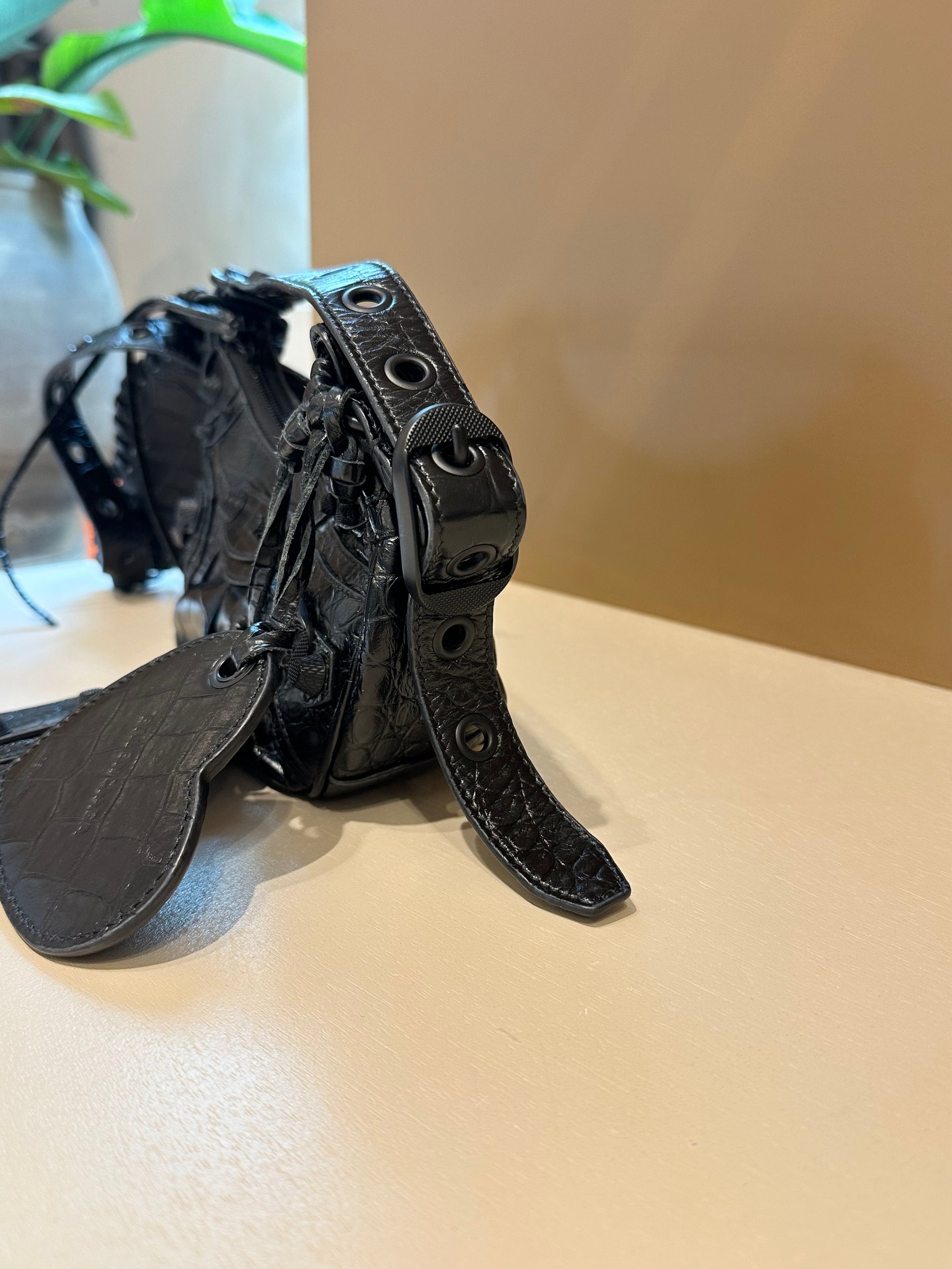 Balenciaga Le Cagole XS Crocodile Embossed Bag Black