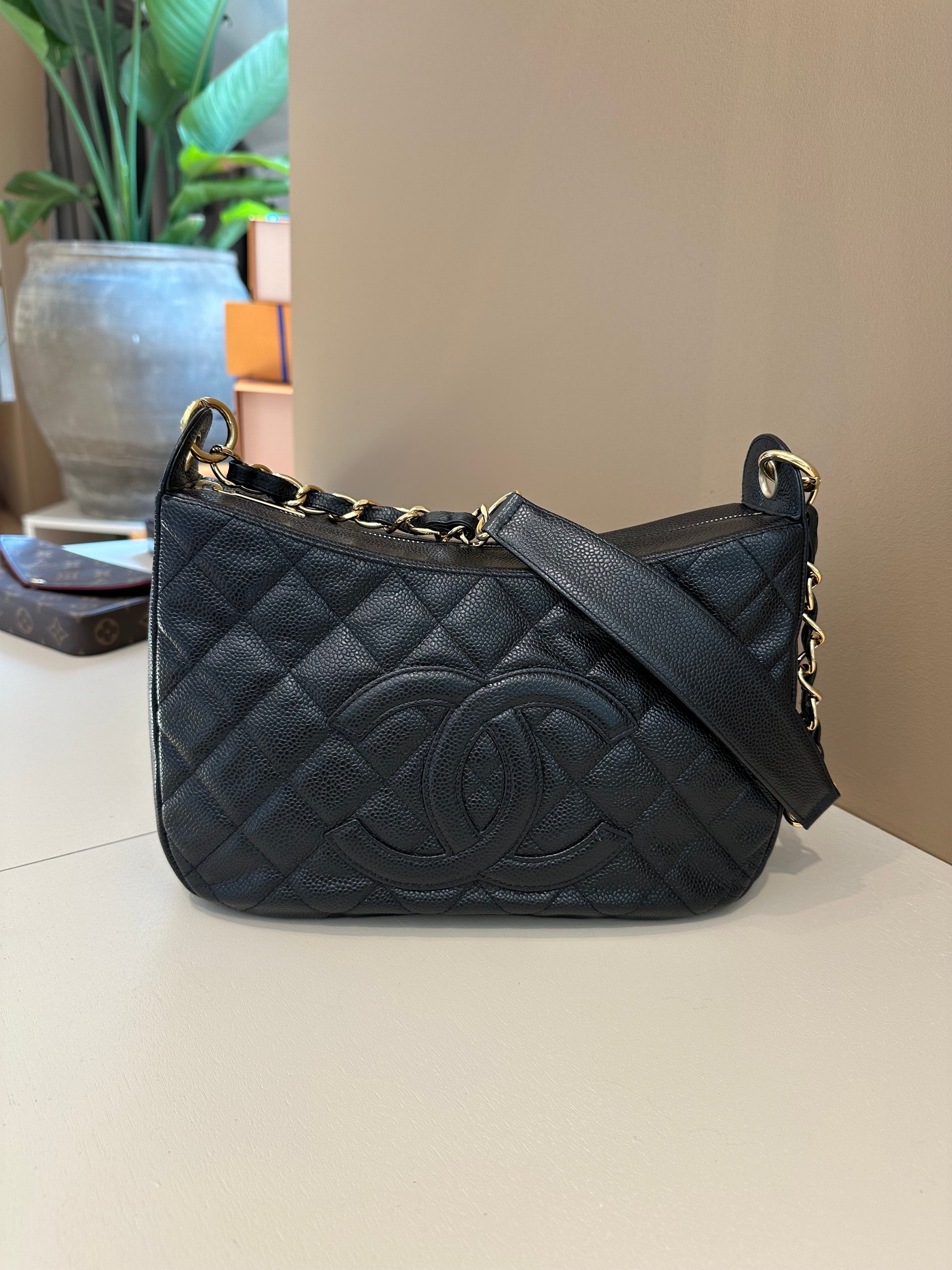 Chanel CC Hobo Shoulder Bag Black GHW
