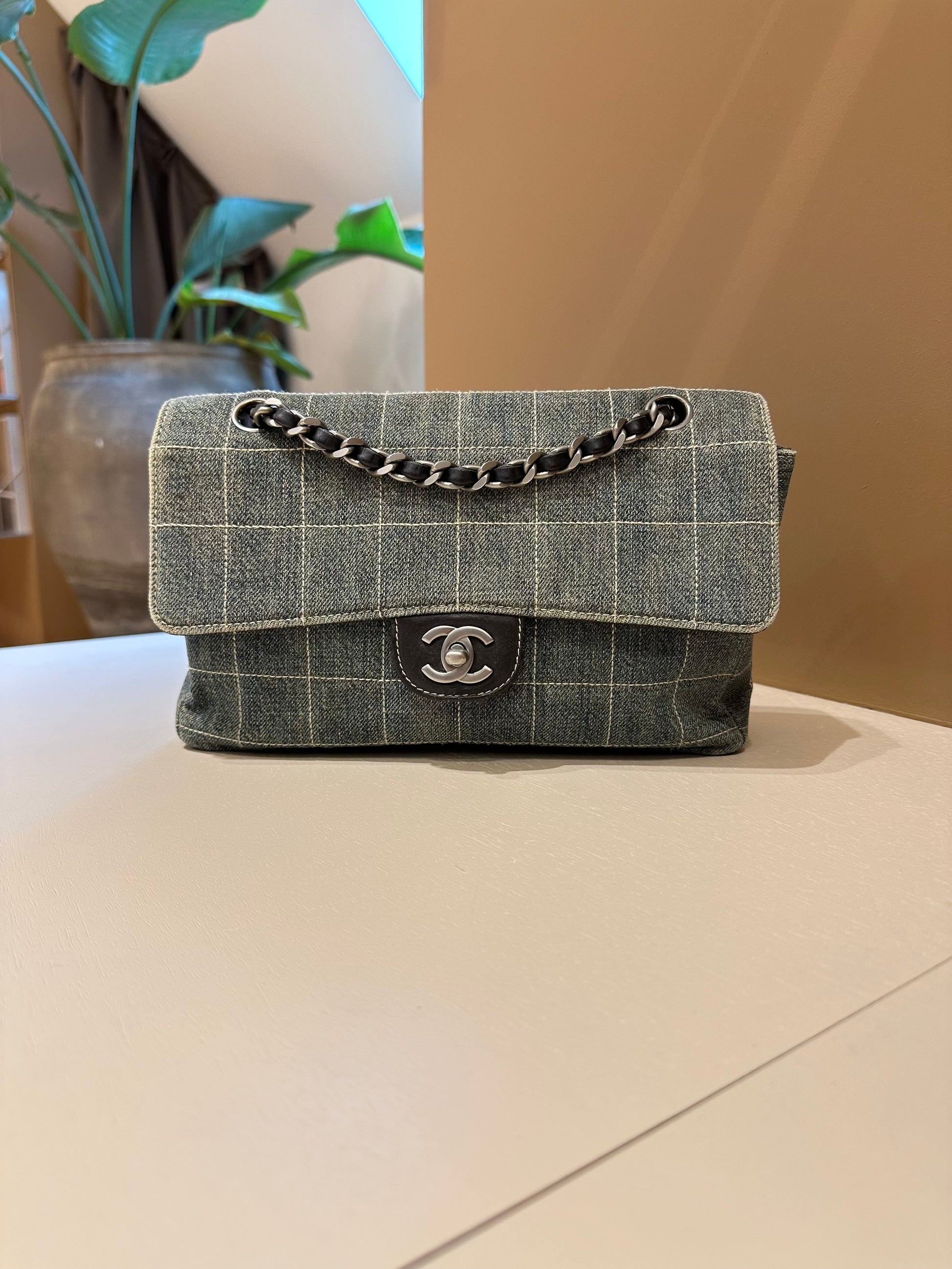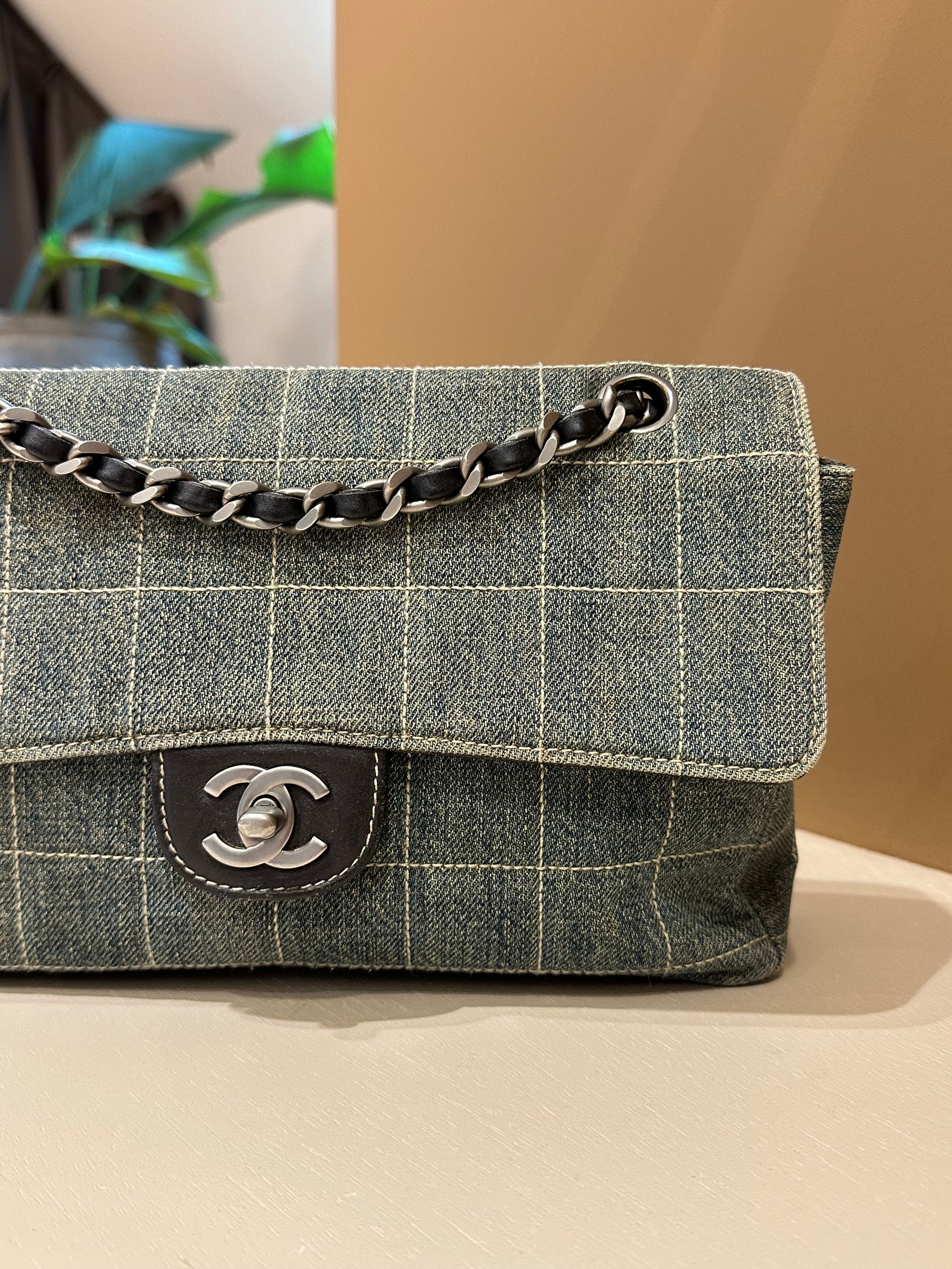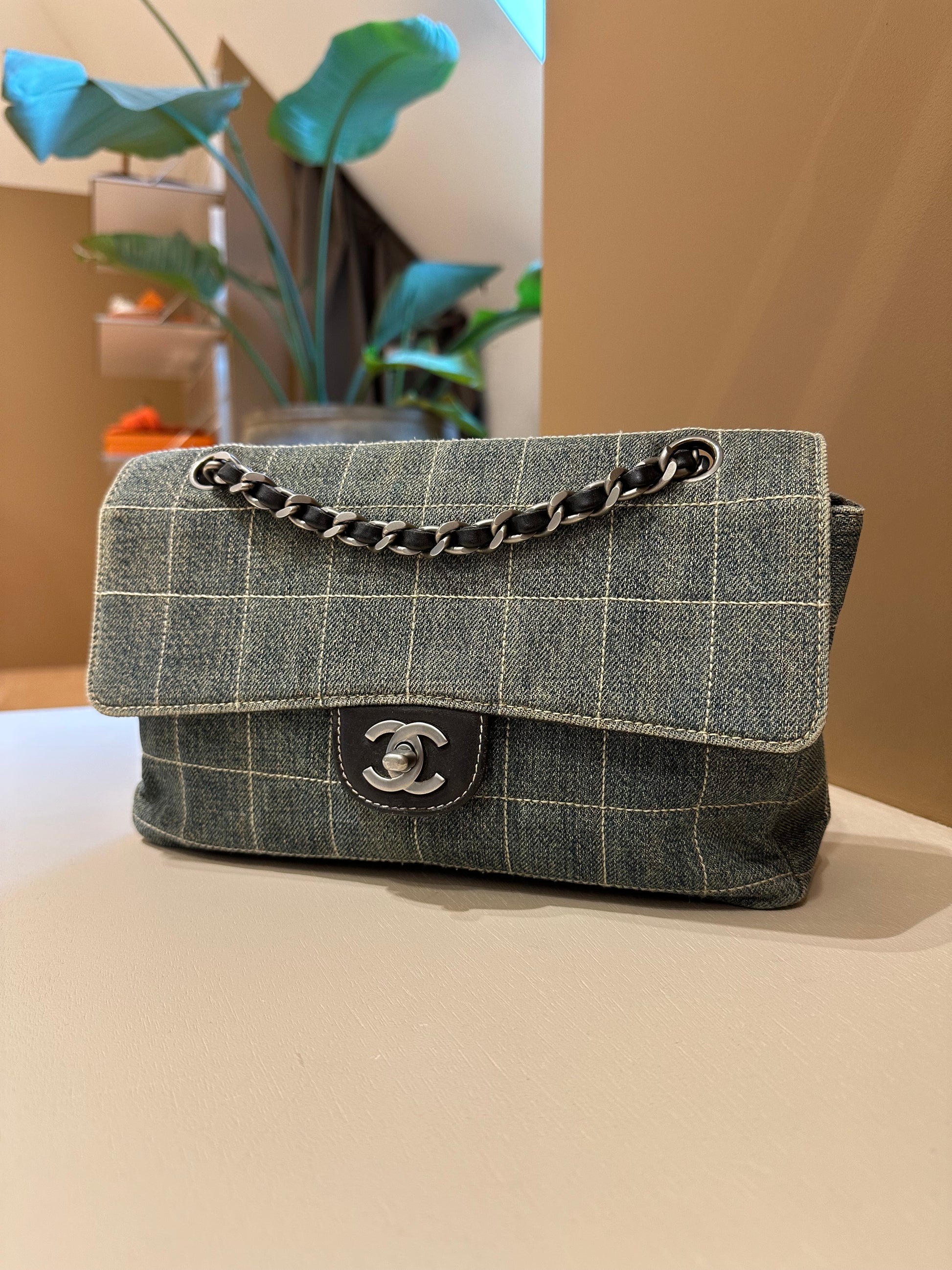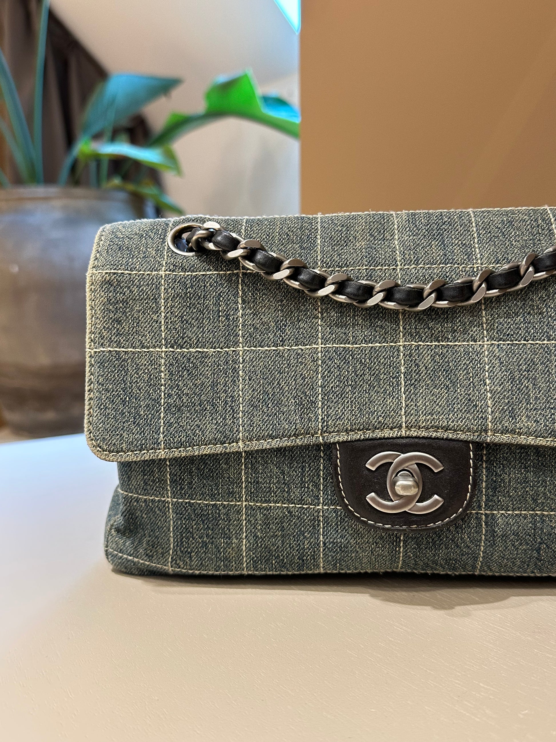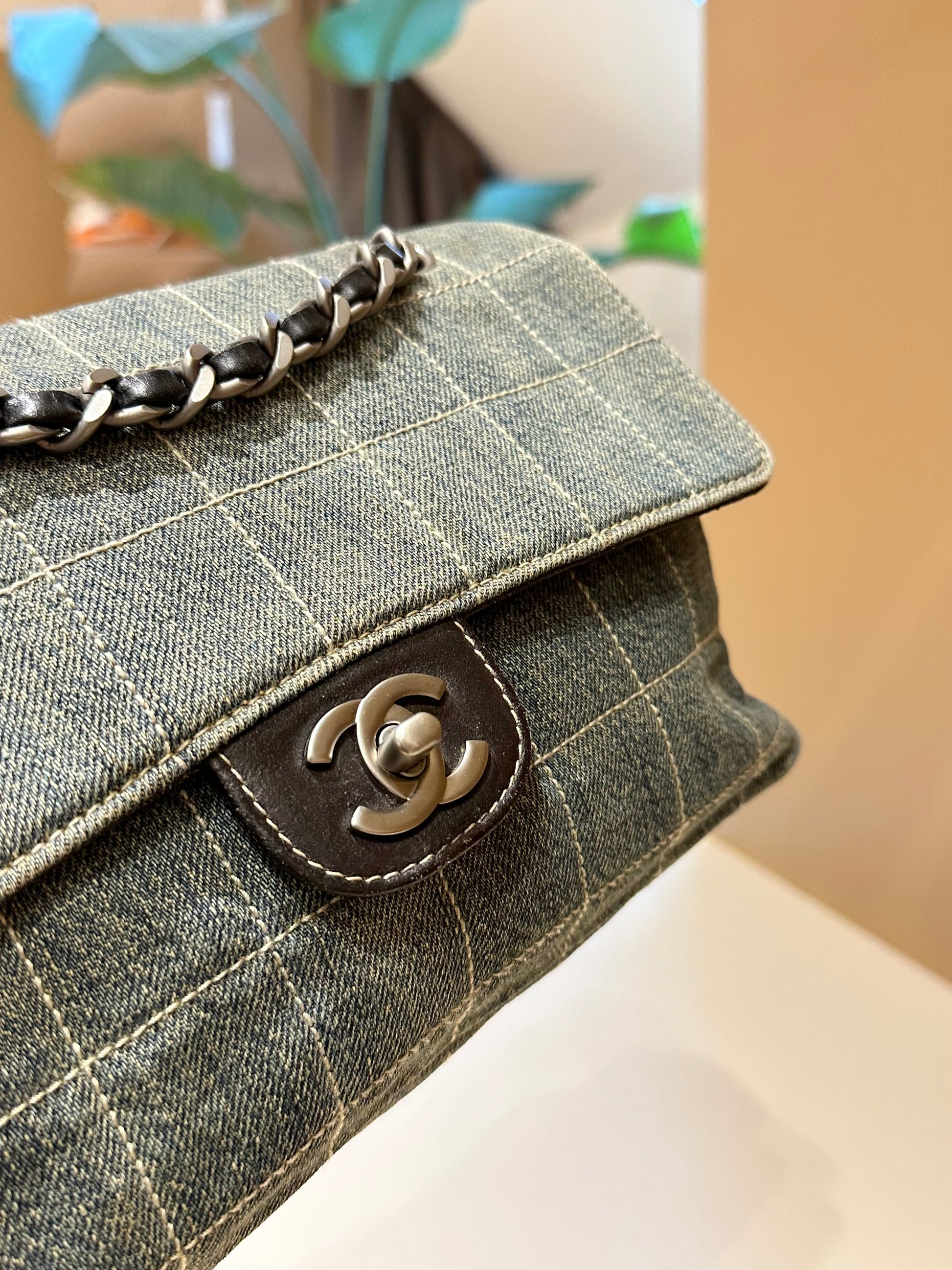Model: Vintage Denim Chocolate Bar Medium Classic Flap Bag SHW
