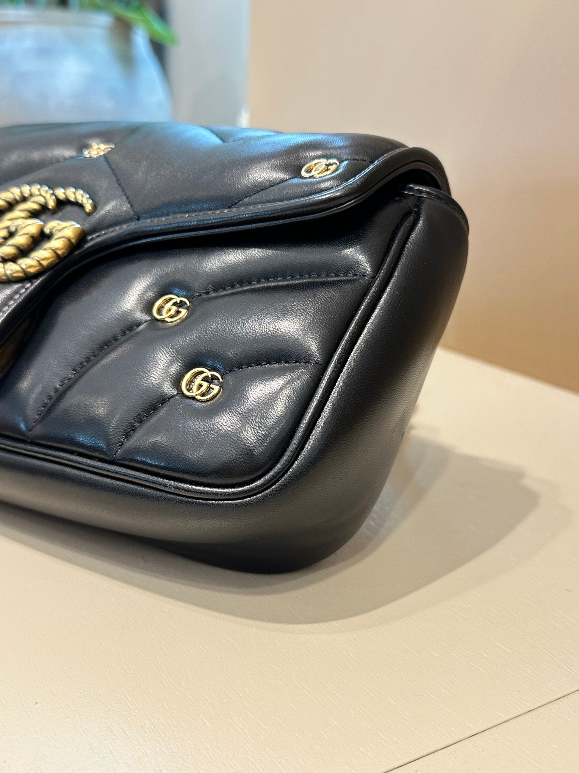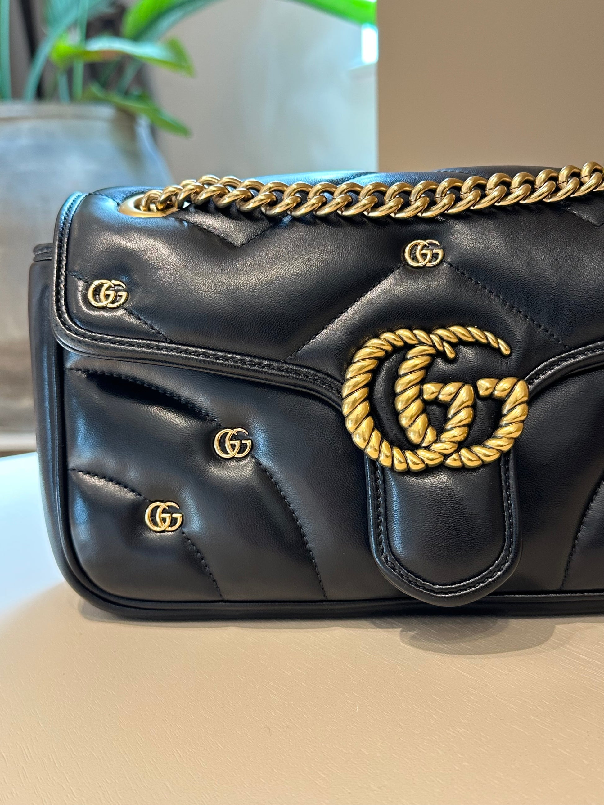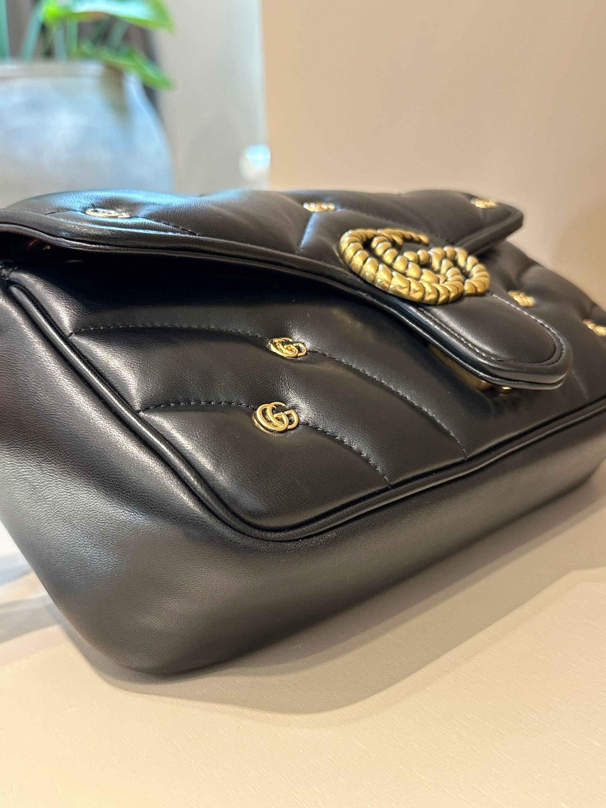 Gucci GG Marmont Logo Plaque Small Bag Black