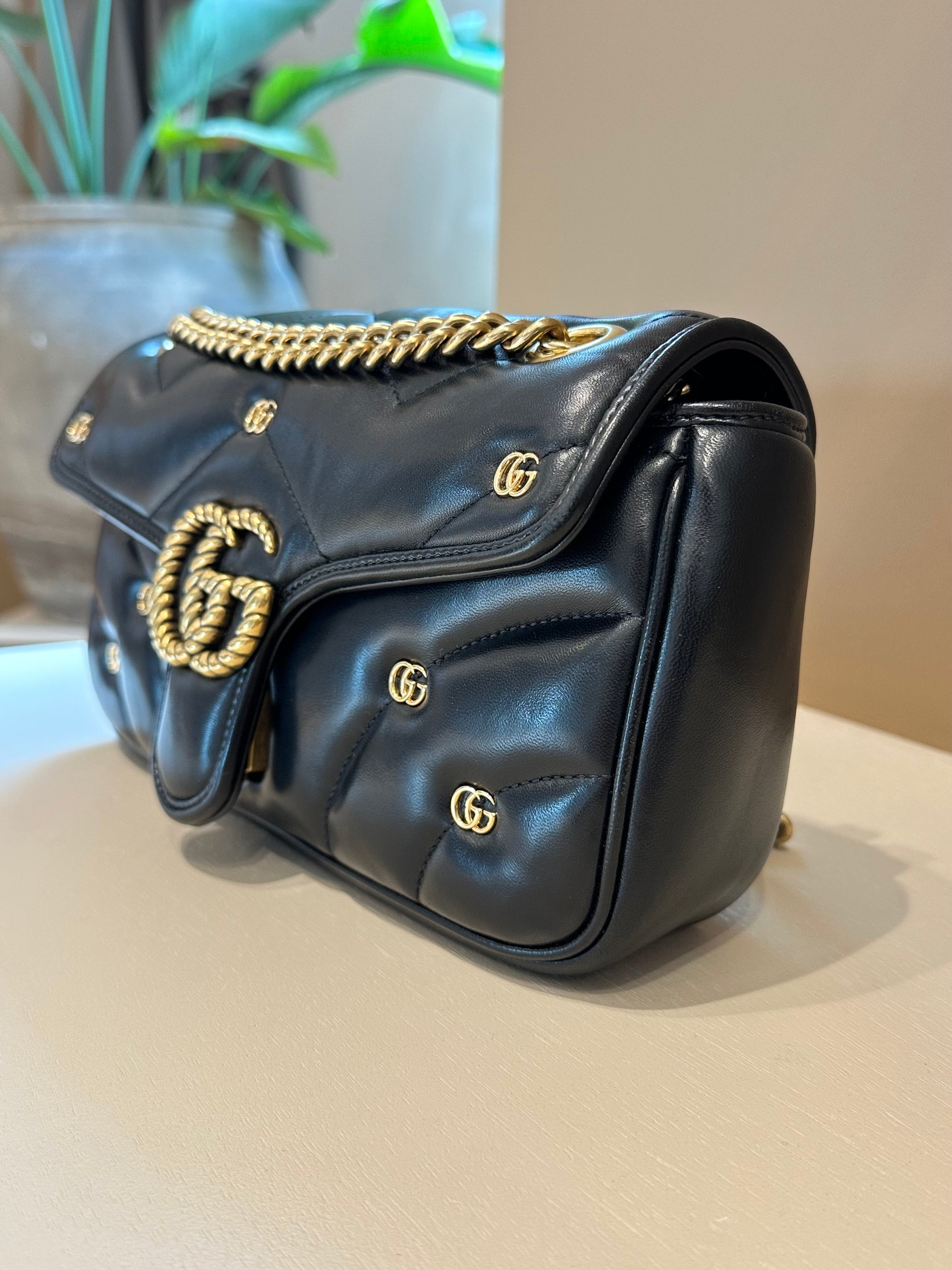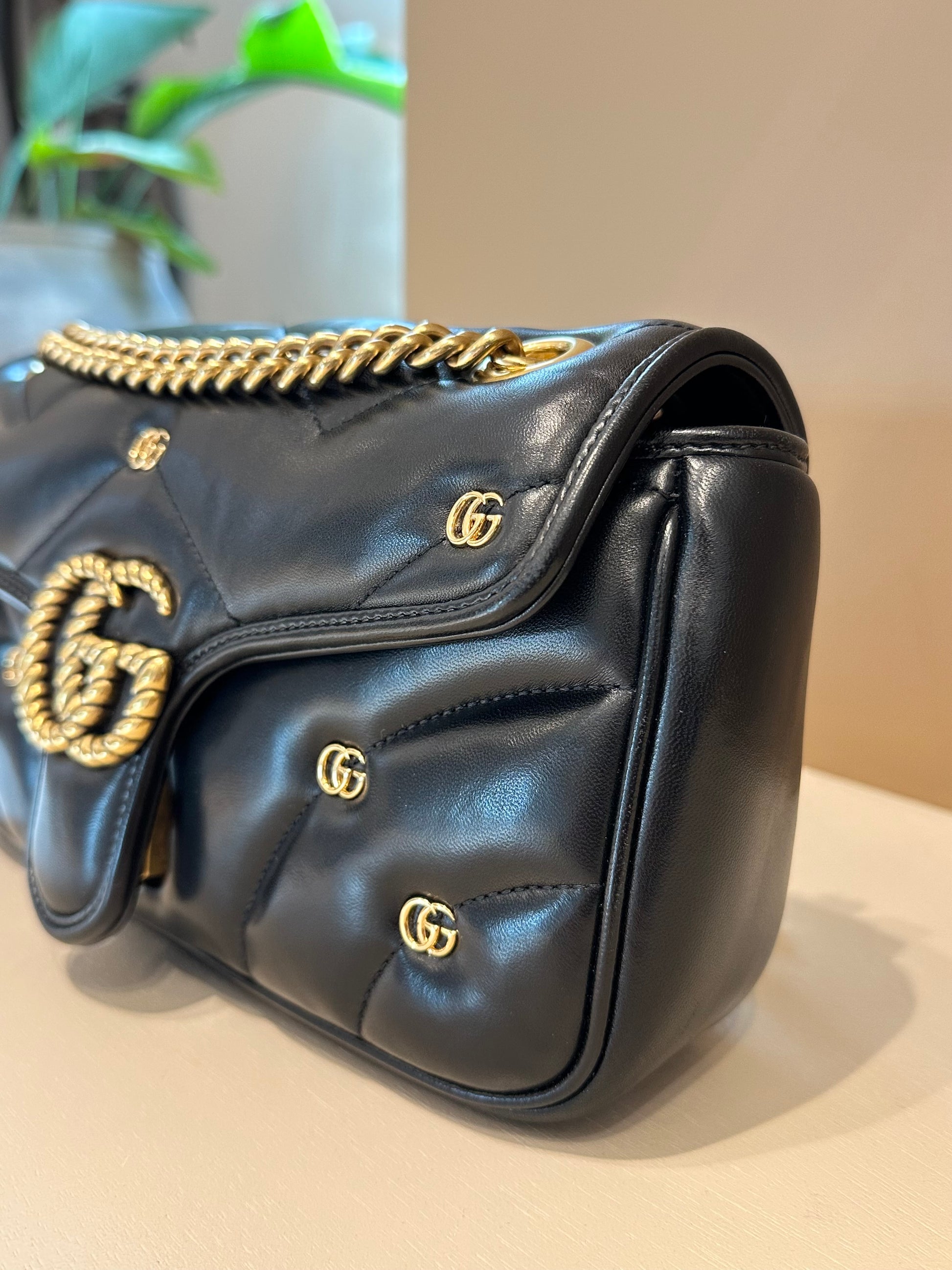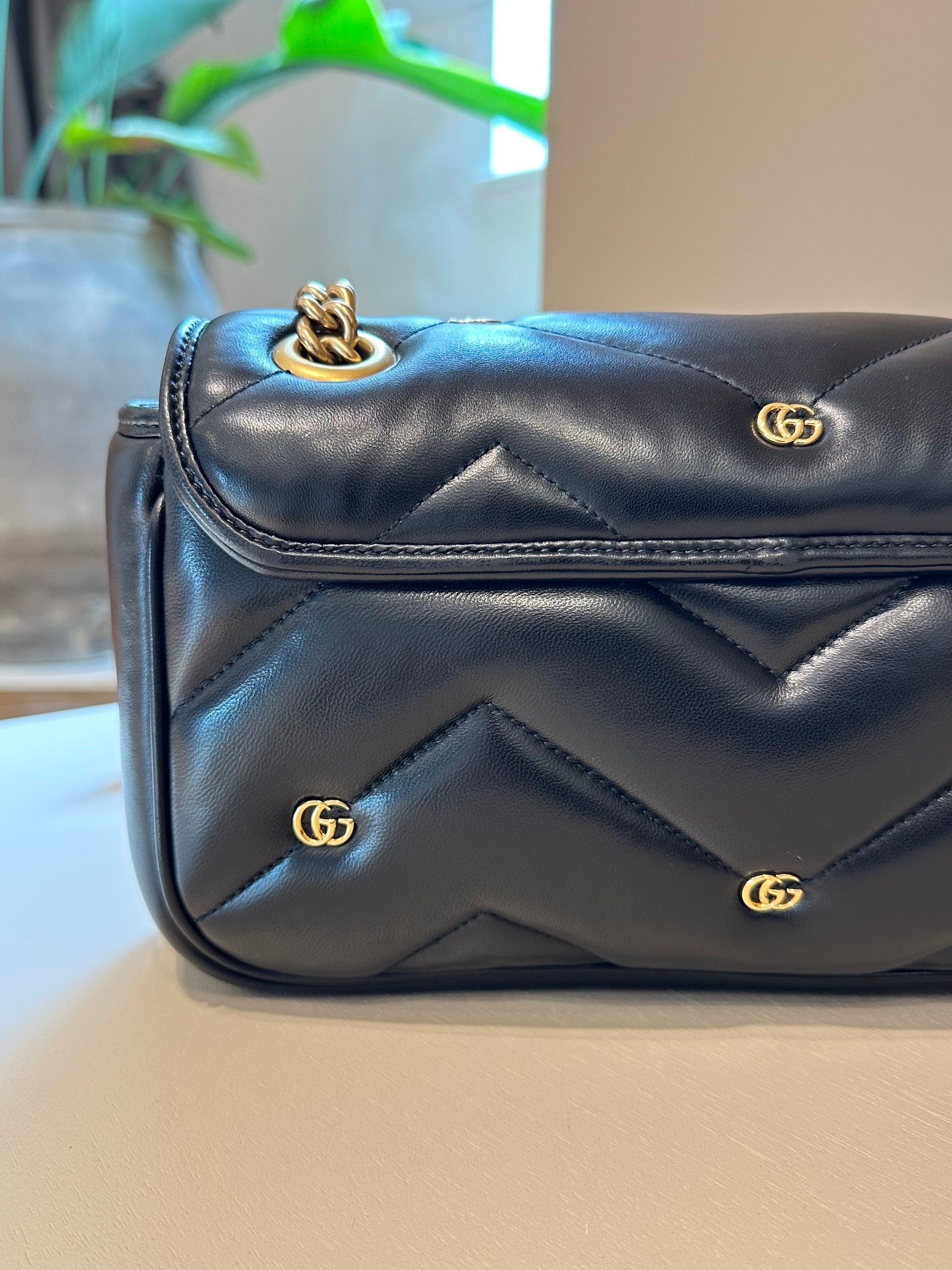 Gucci GG Marmont Logo Plaque Small Bag Black