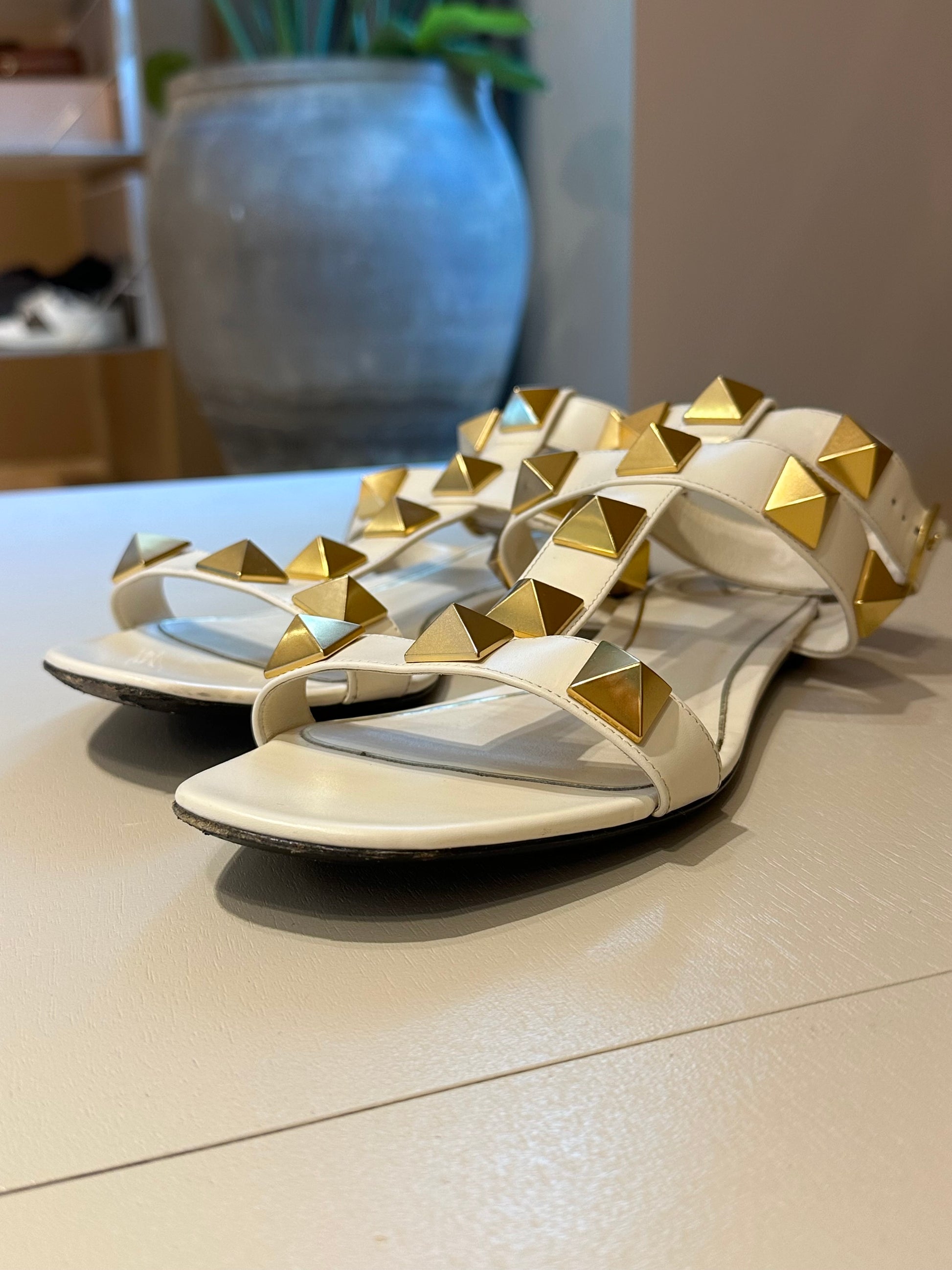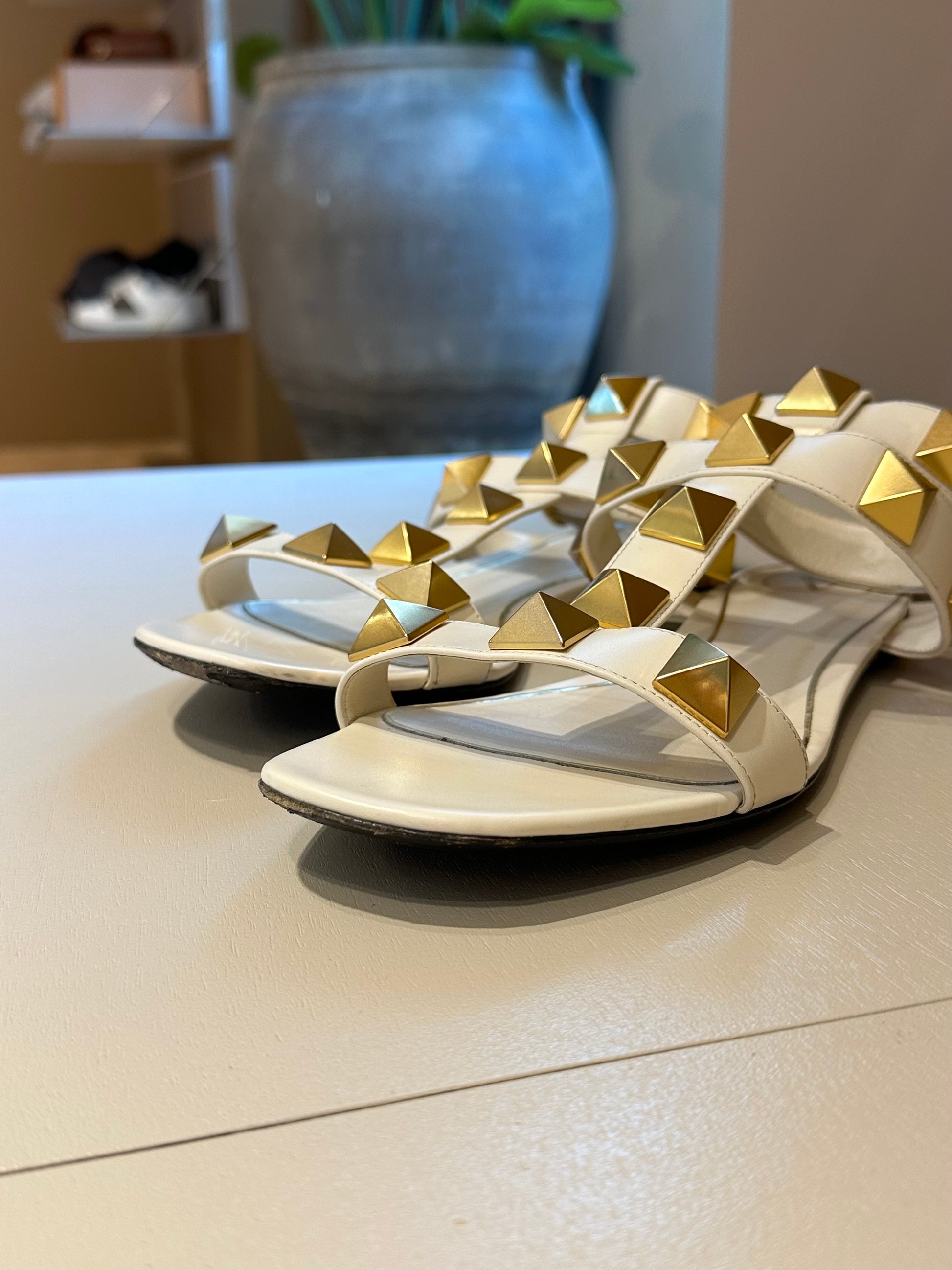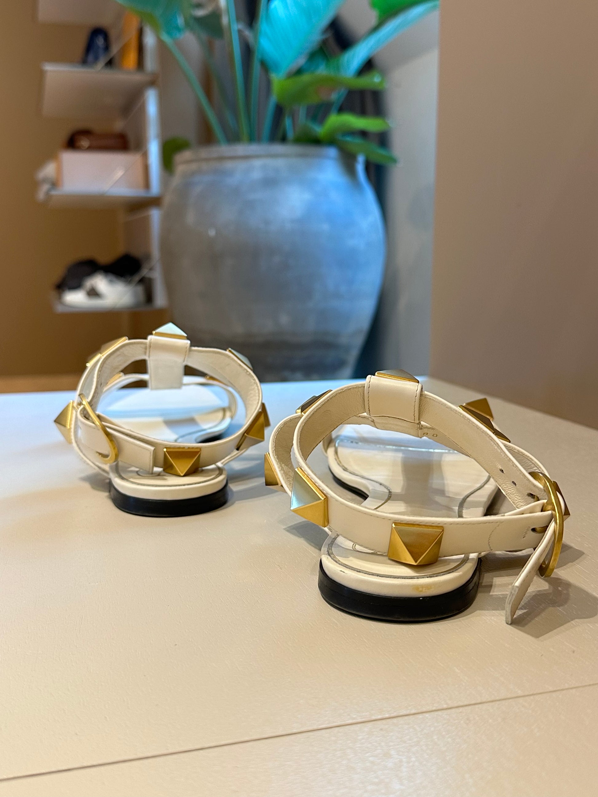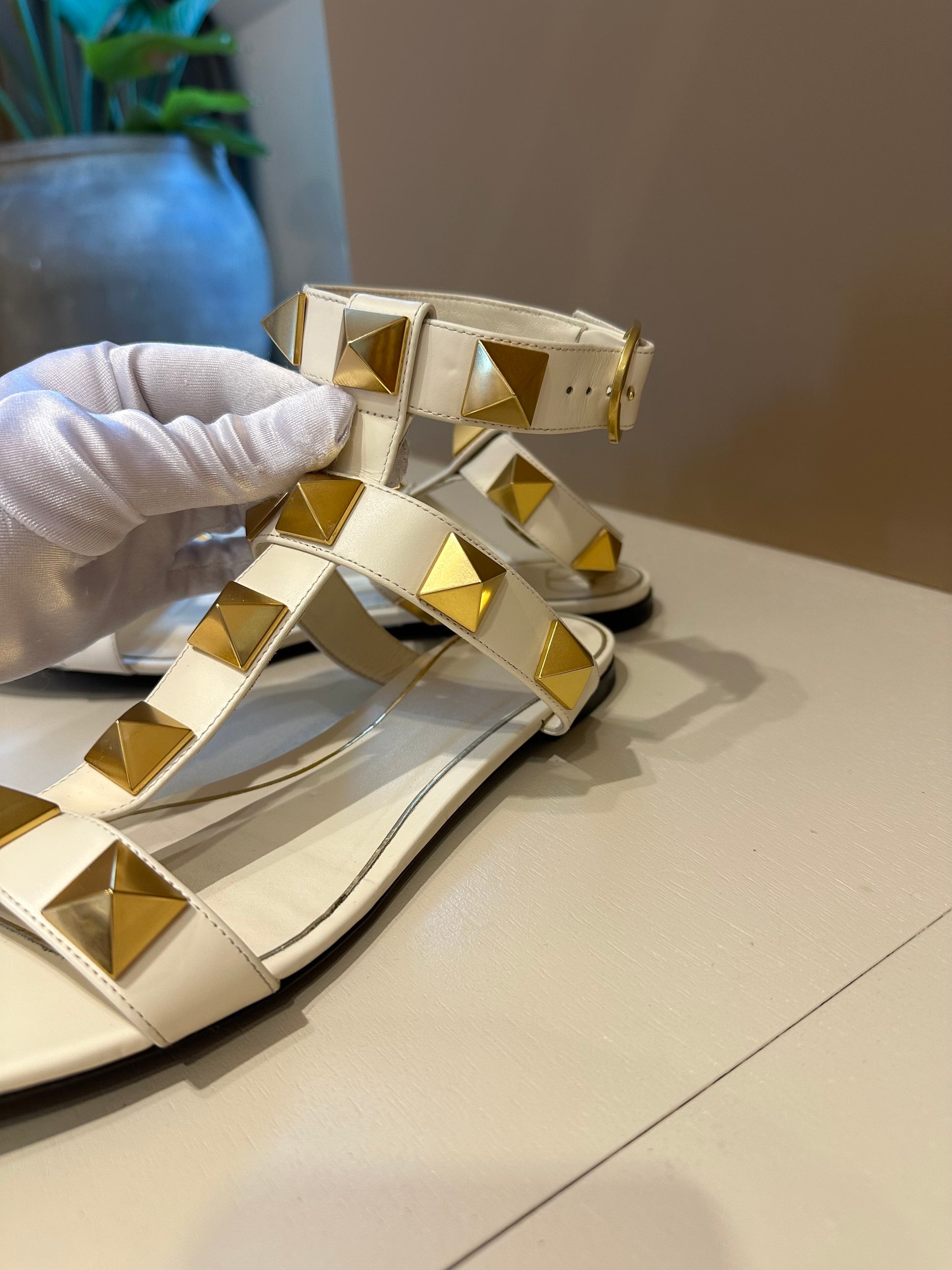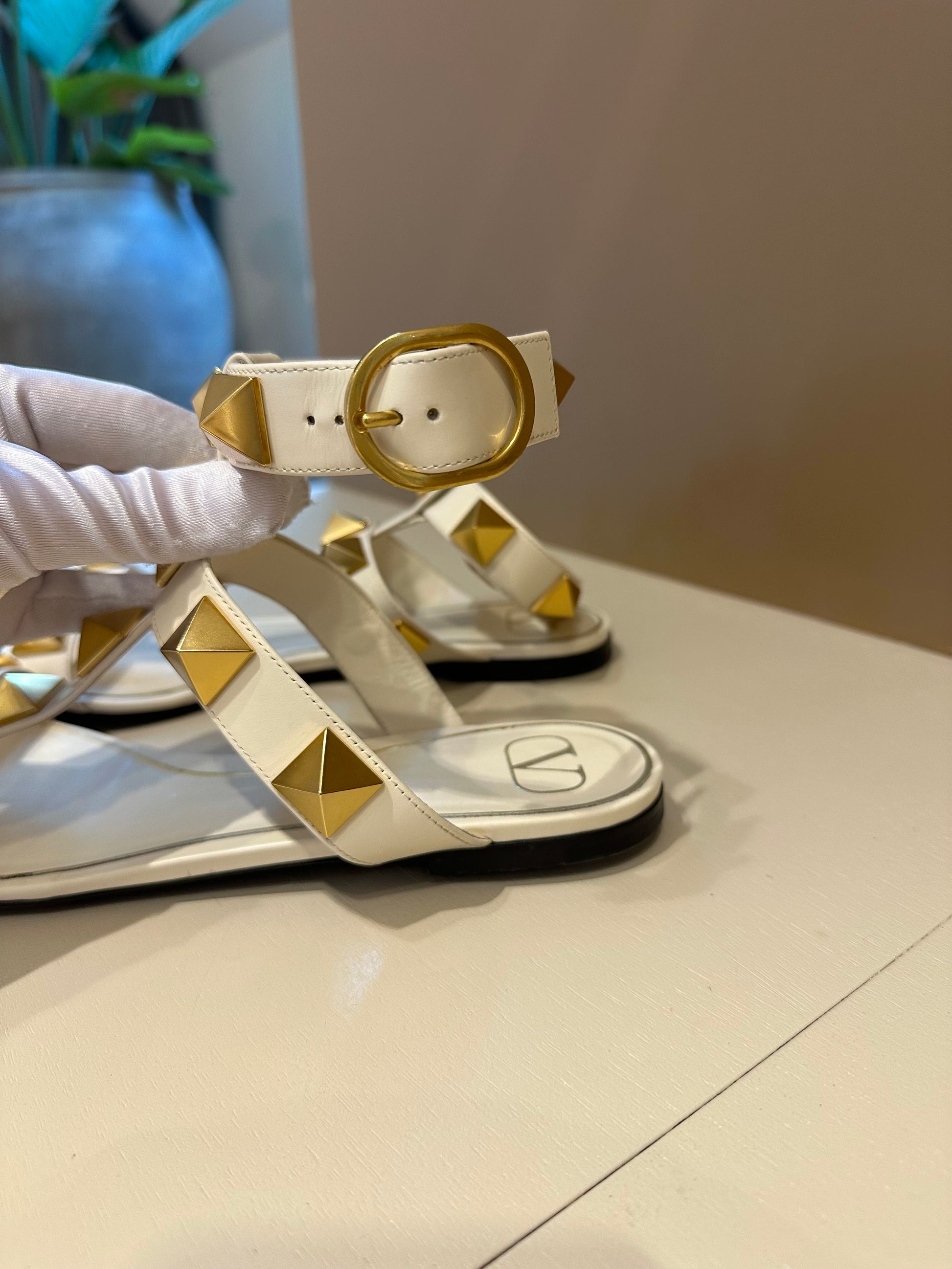 Valentino Garavani Roman Stud Flat Sandals White 41