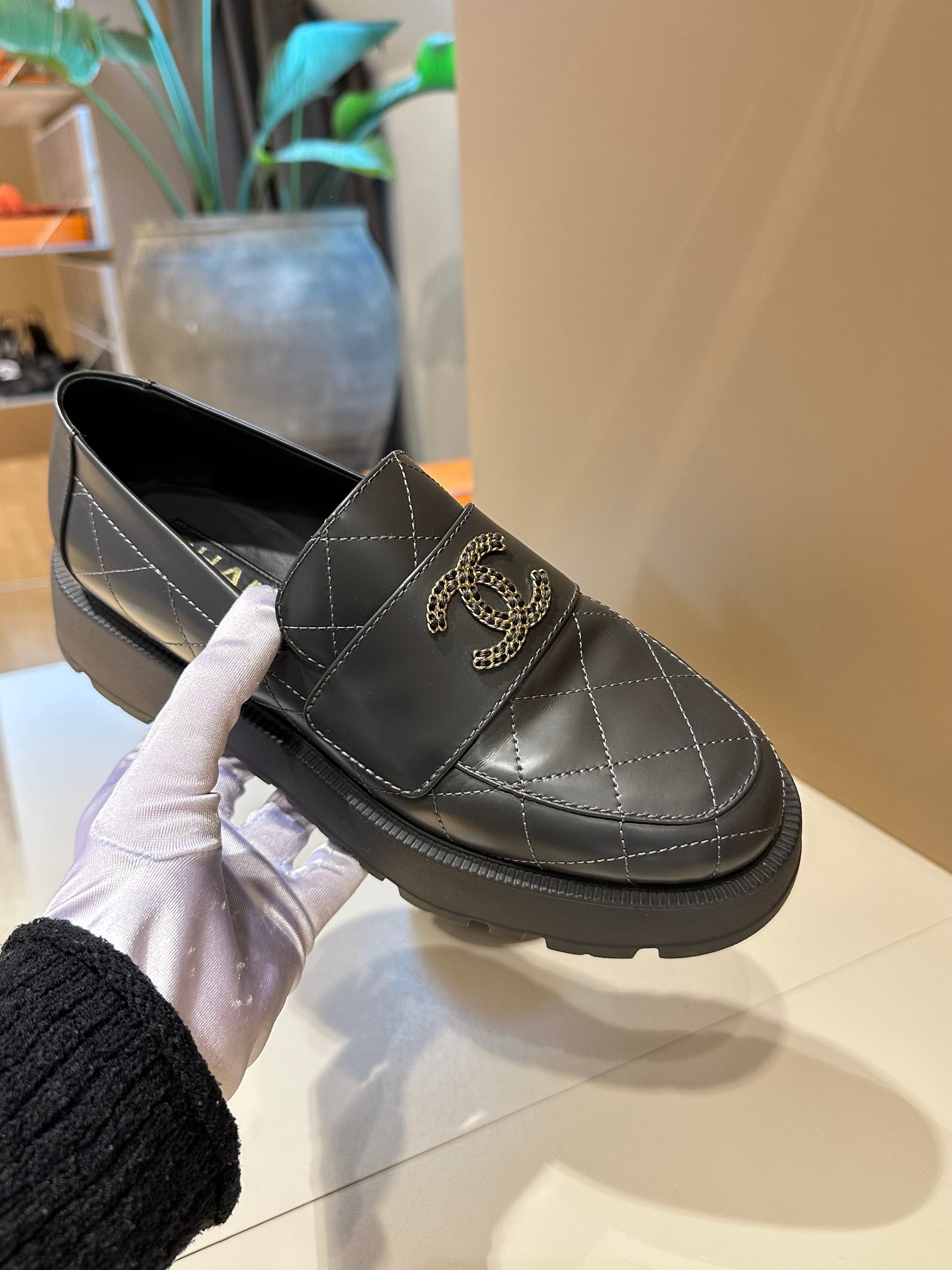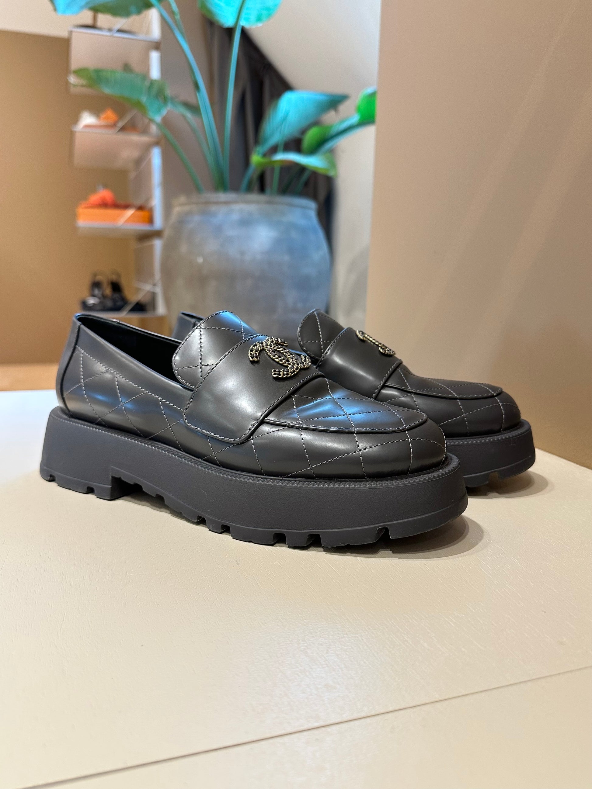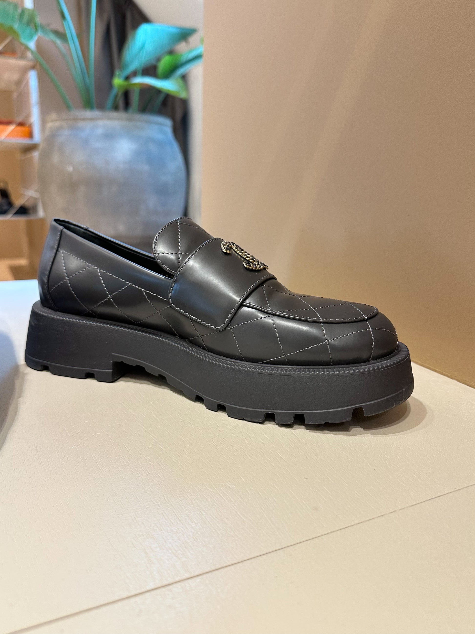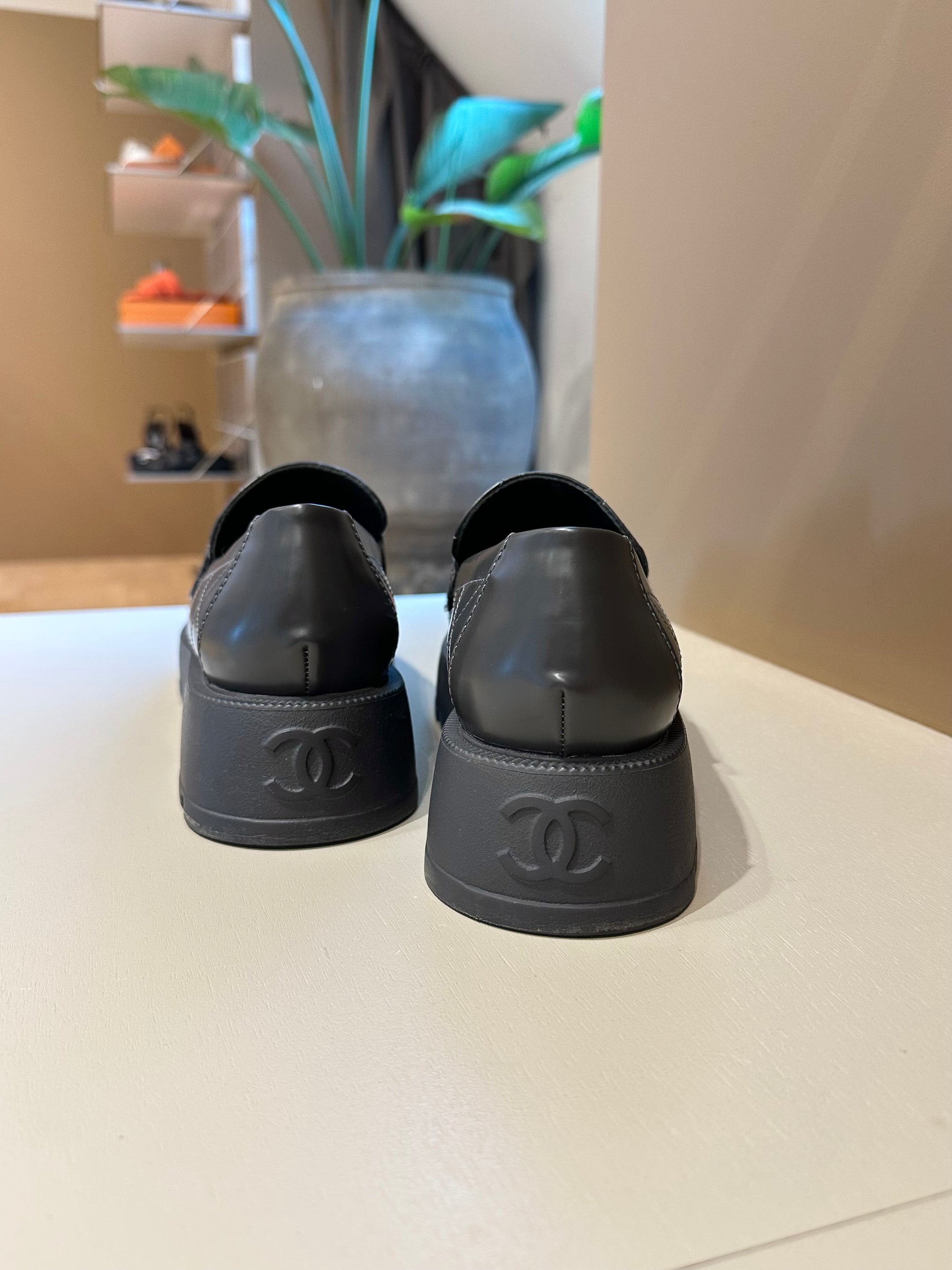 Chanel CC Logo Moccasins Grey GHW 39,5