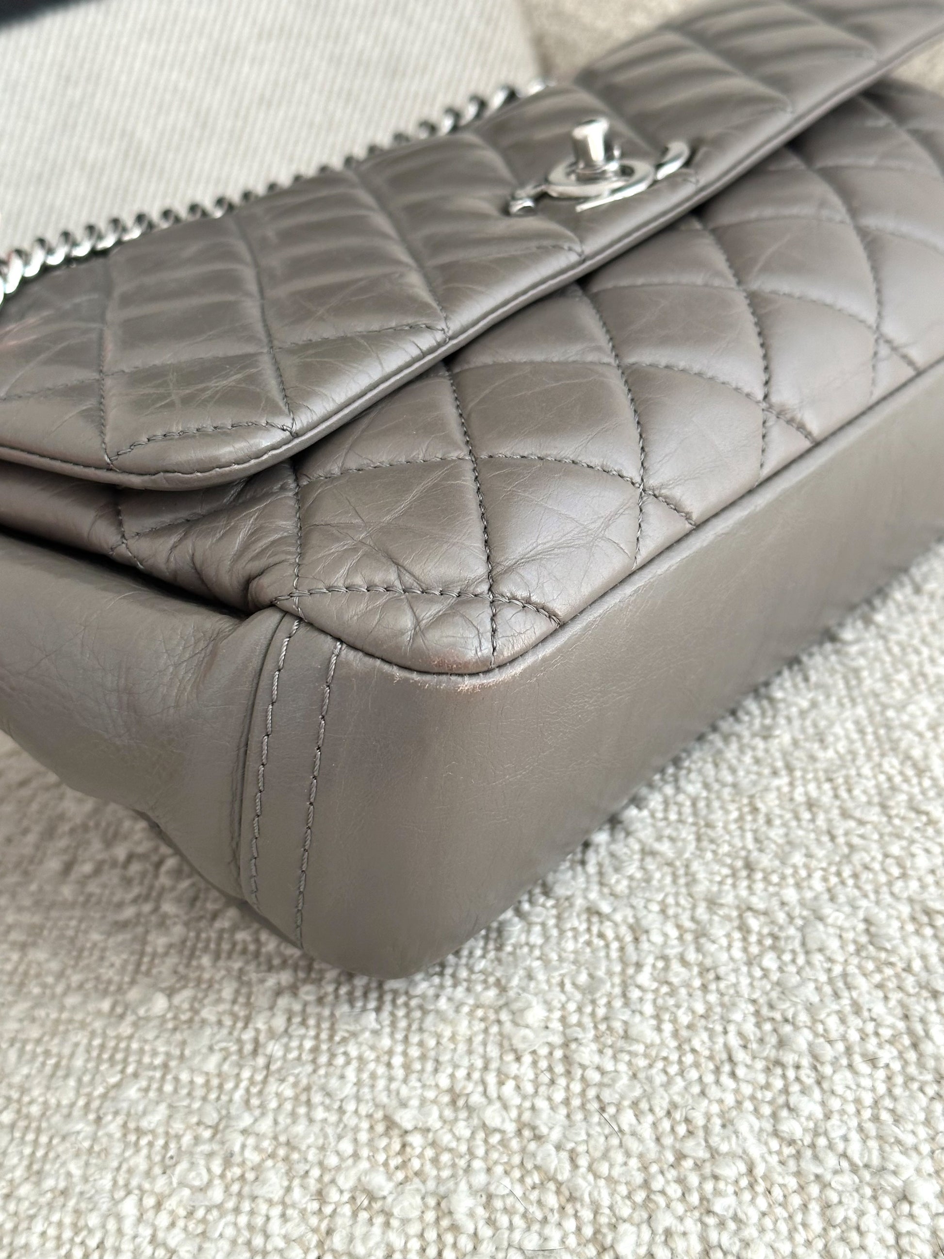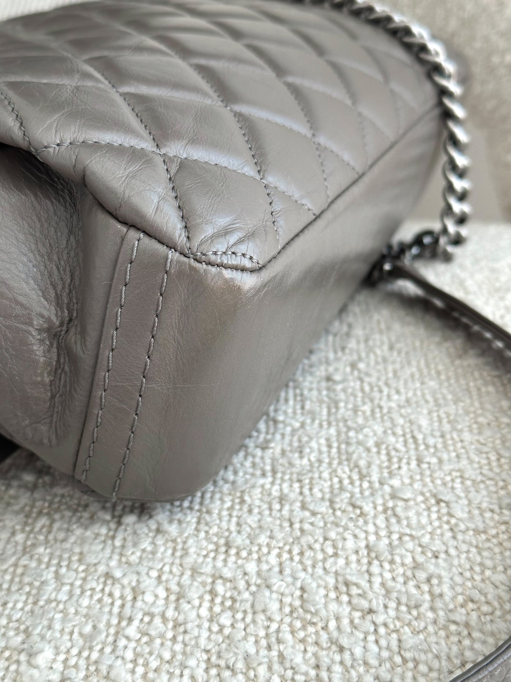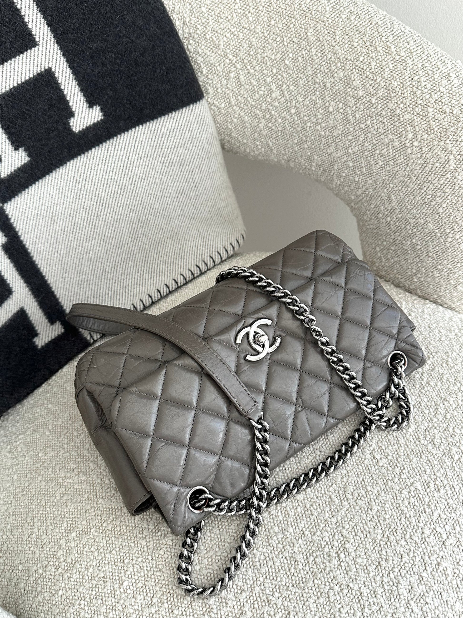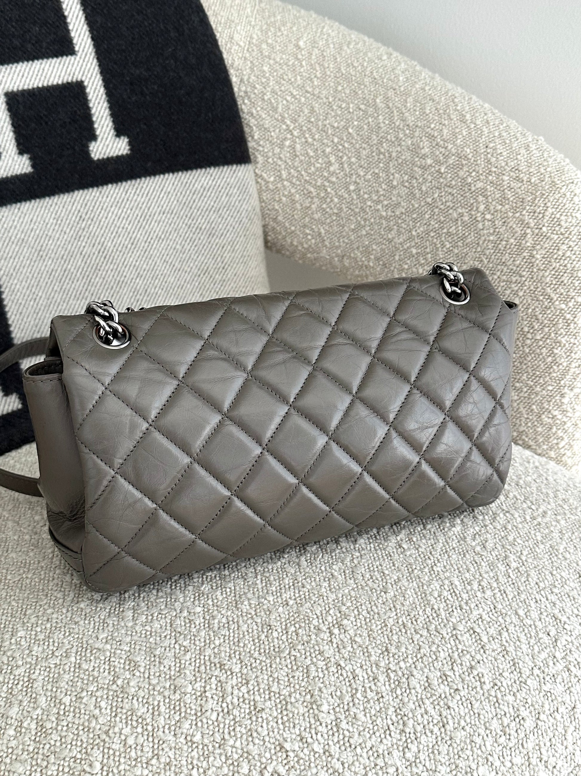 Chanel Lady Pearly Quilted Flap Bag Grey Aged Calfskin Ruthenium SHW