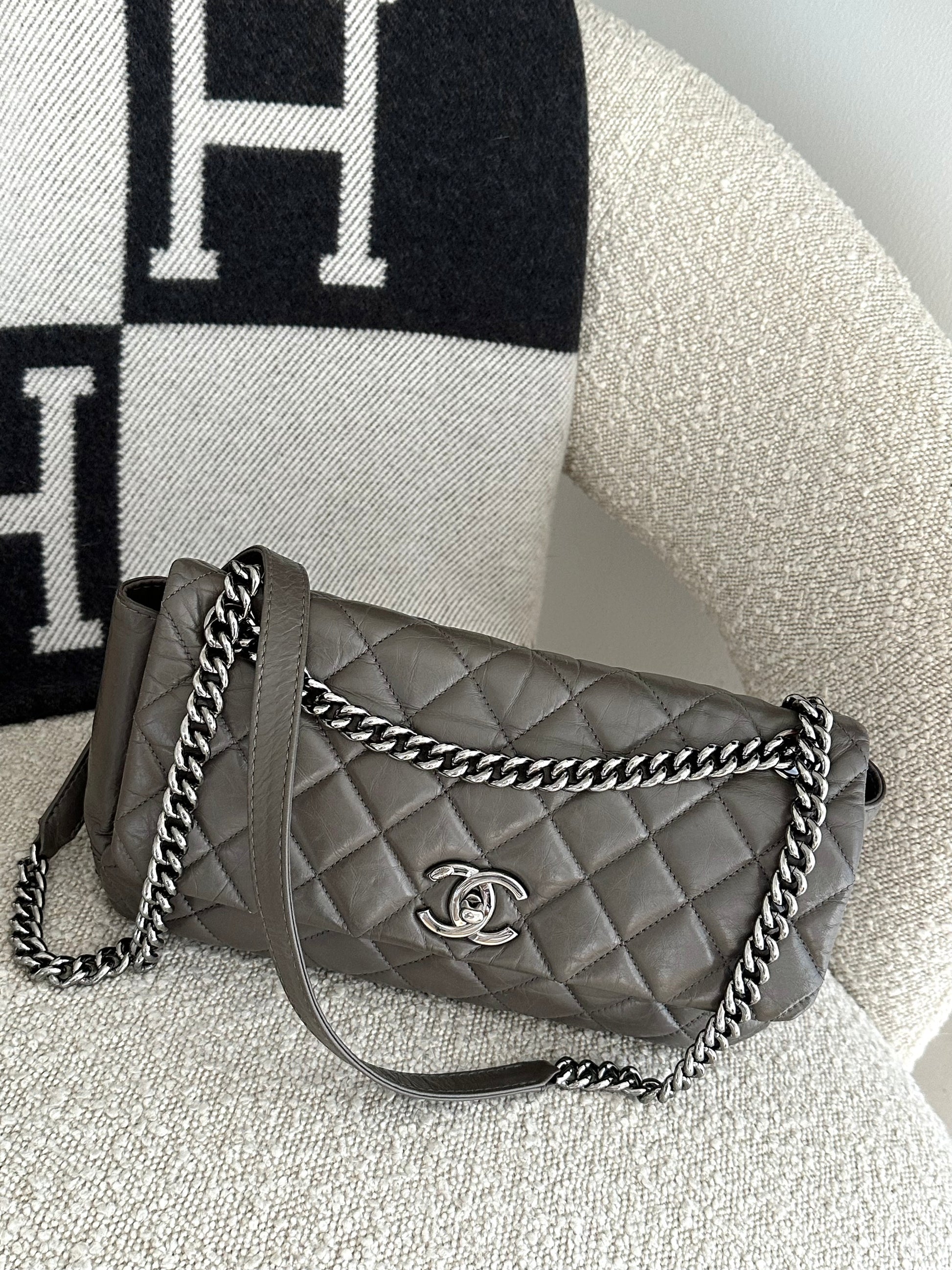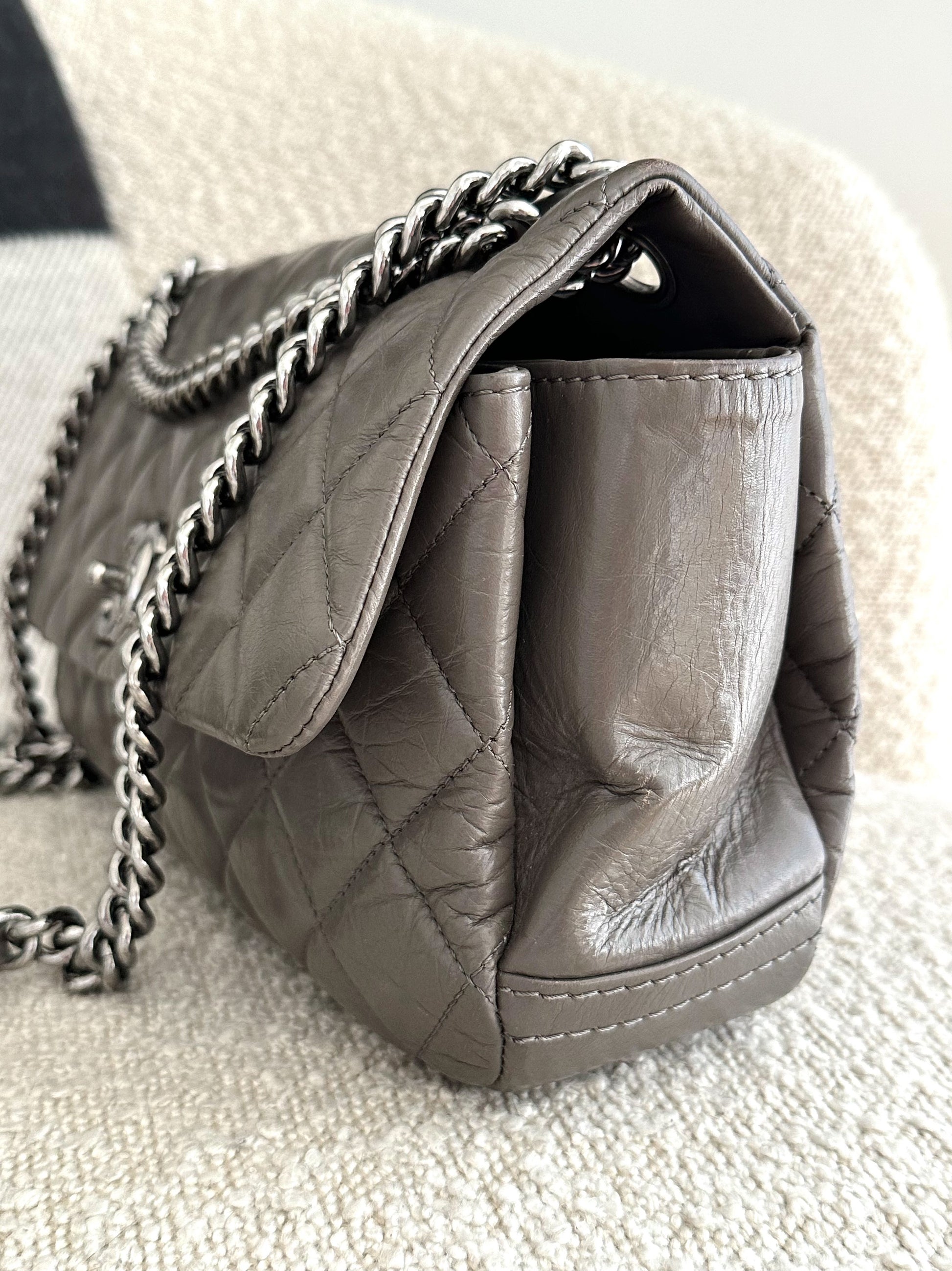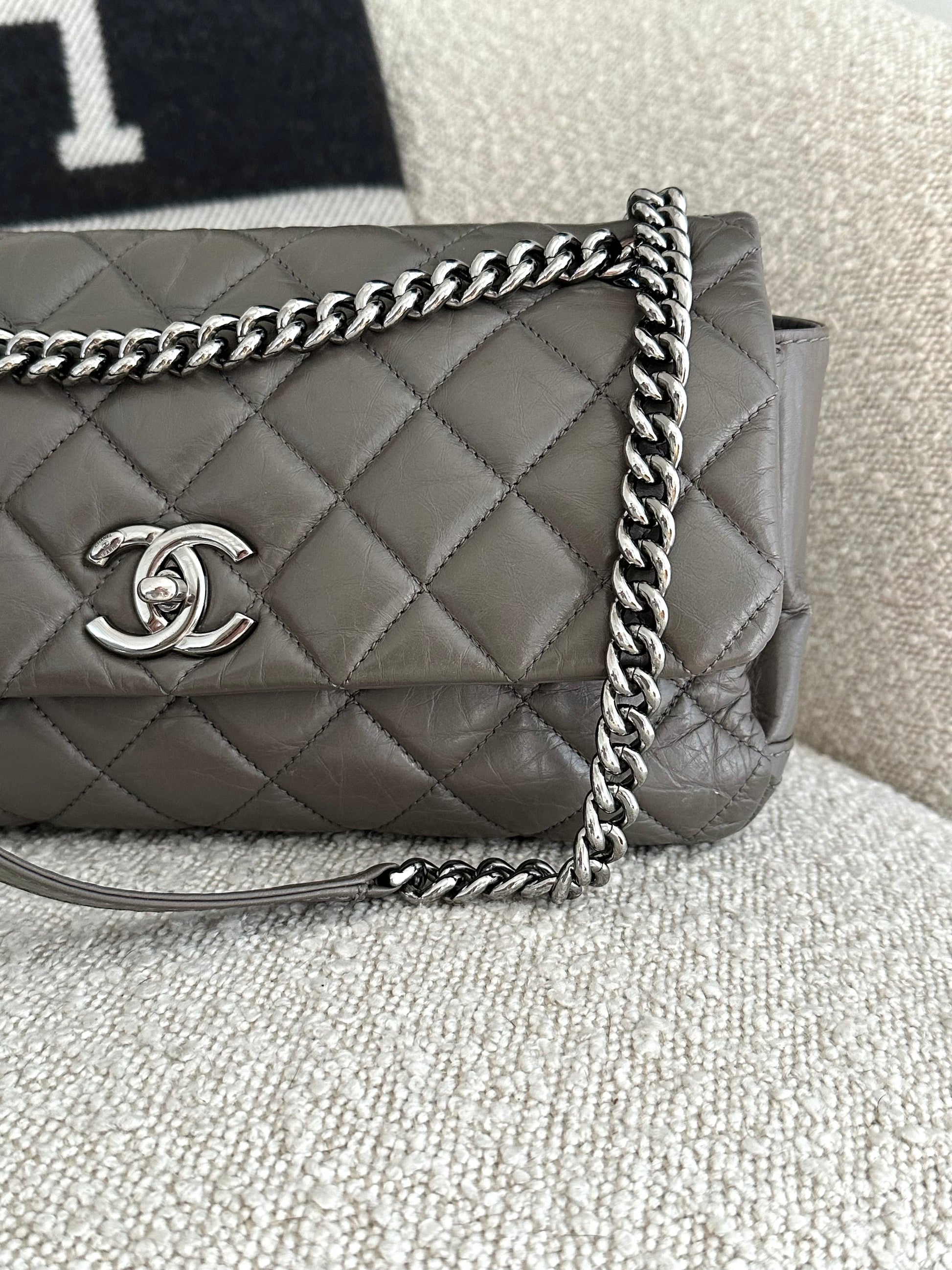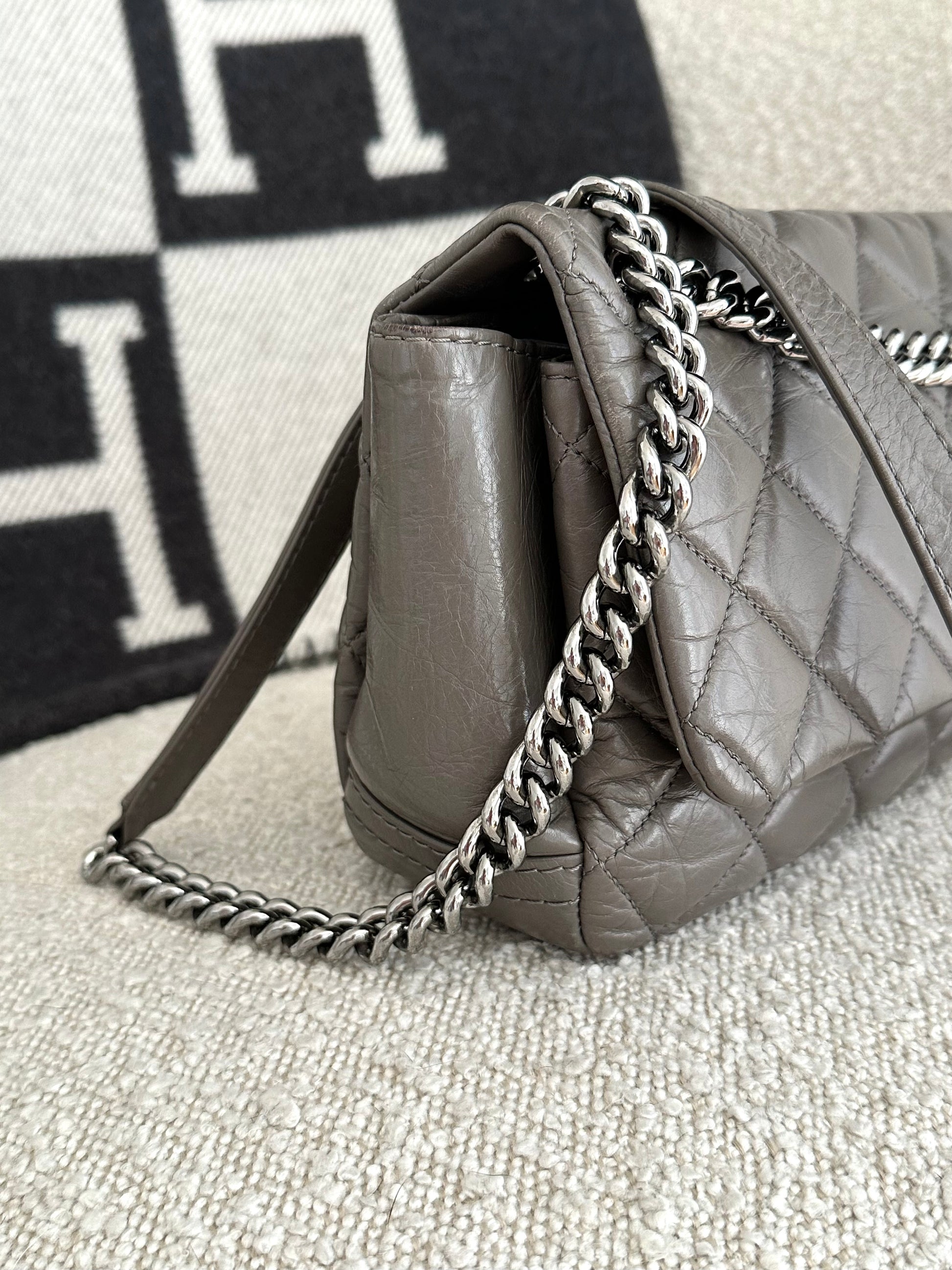Chanel Lady Pearly Quilted Flap Bag Grey Aged Calfskin Ruthenium SHW