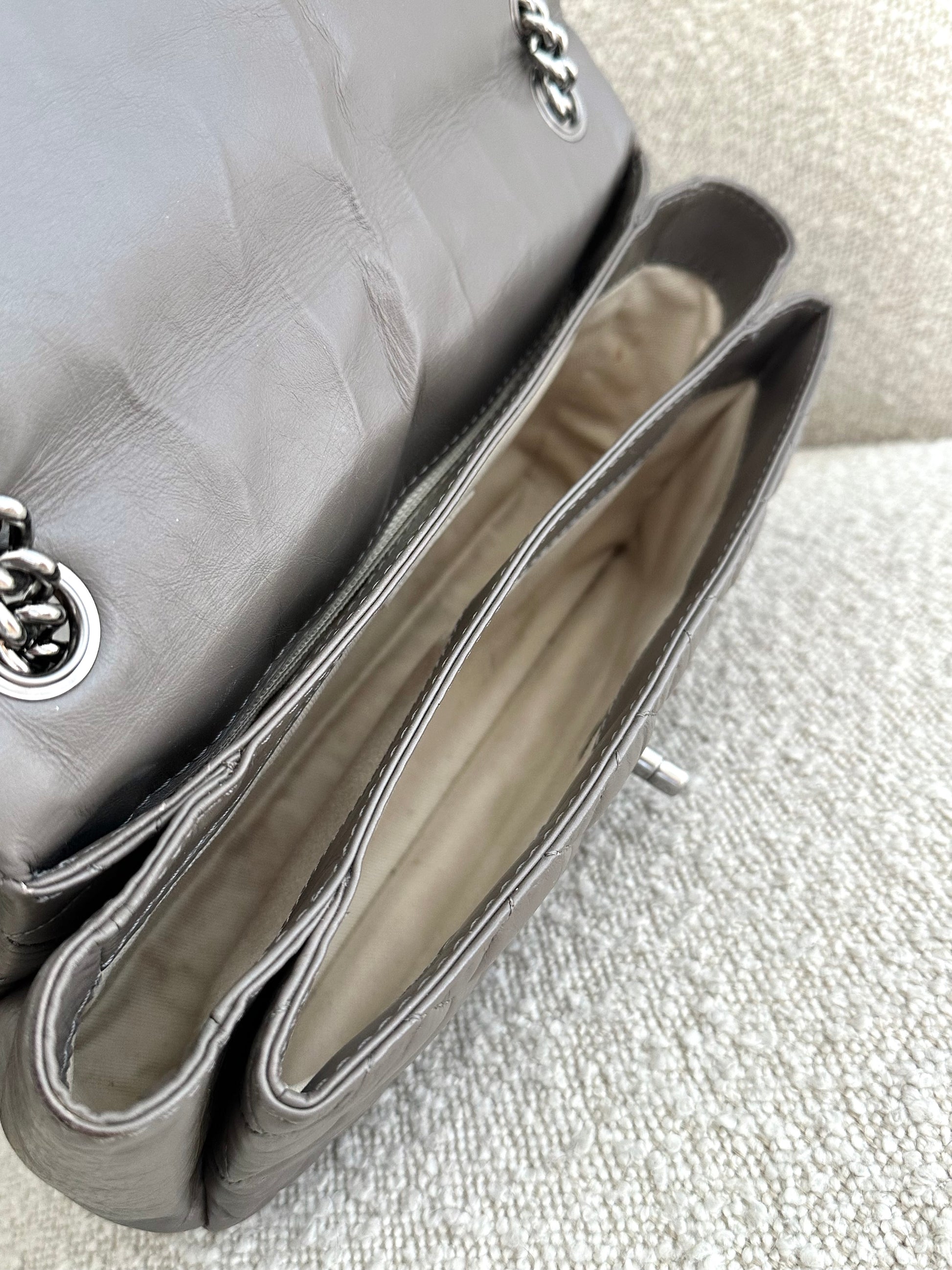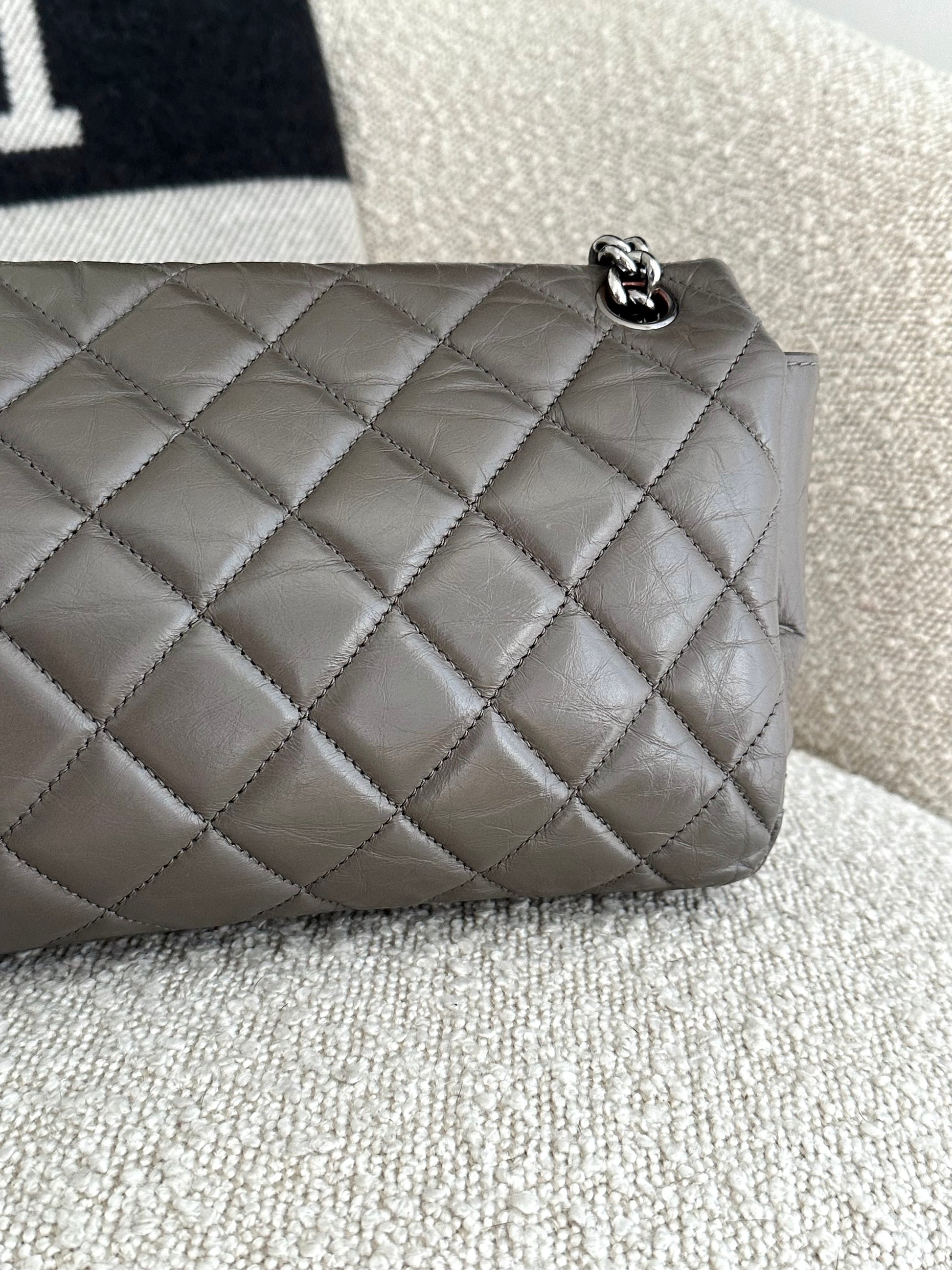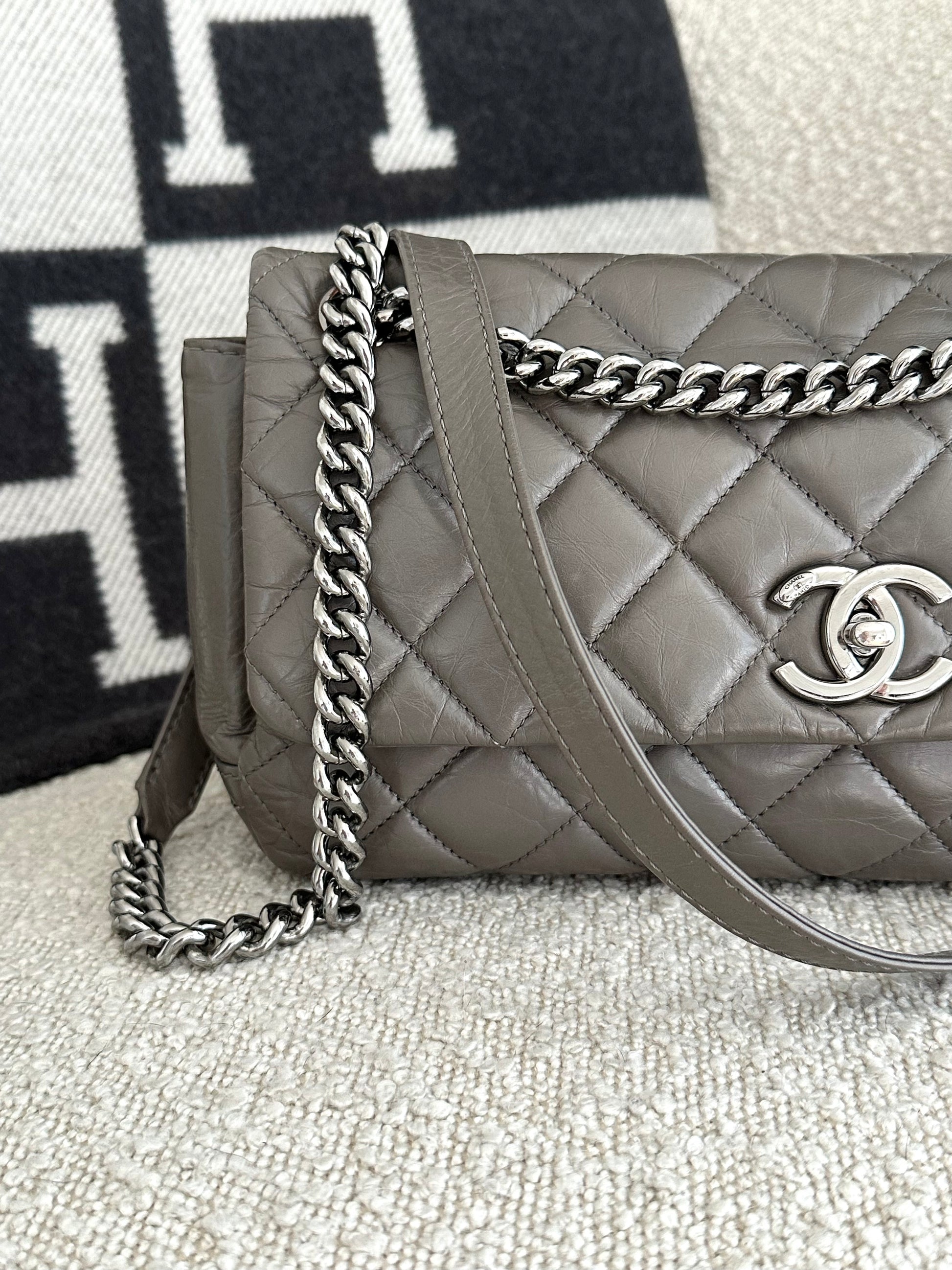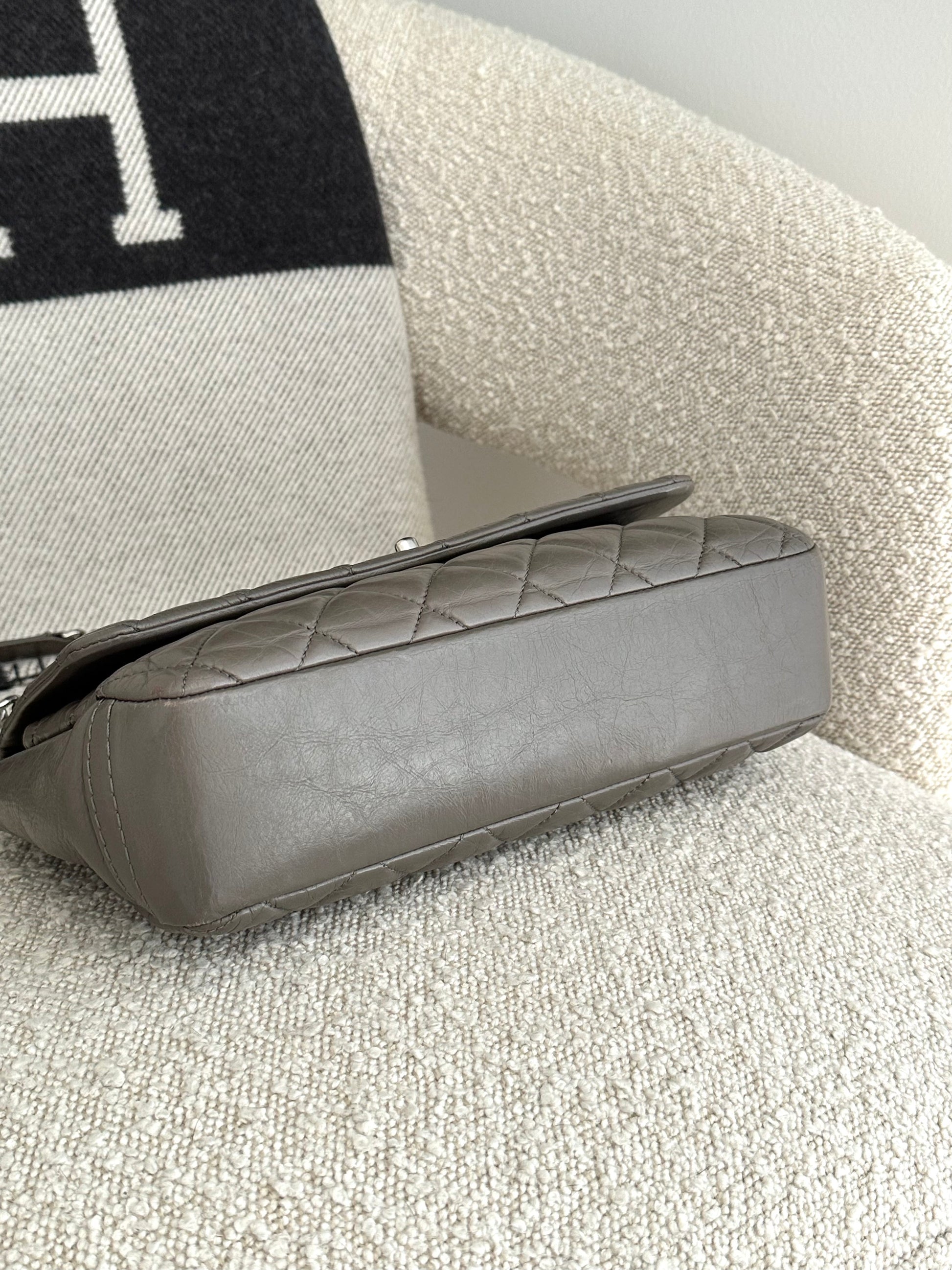 Chanel Lady Pearly Quilted Flap Bag Grey Aged Calfskin Ruthenium SHW