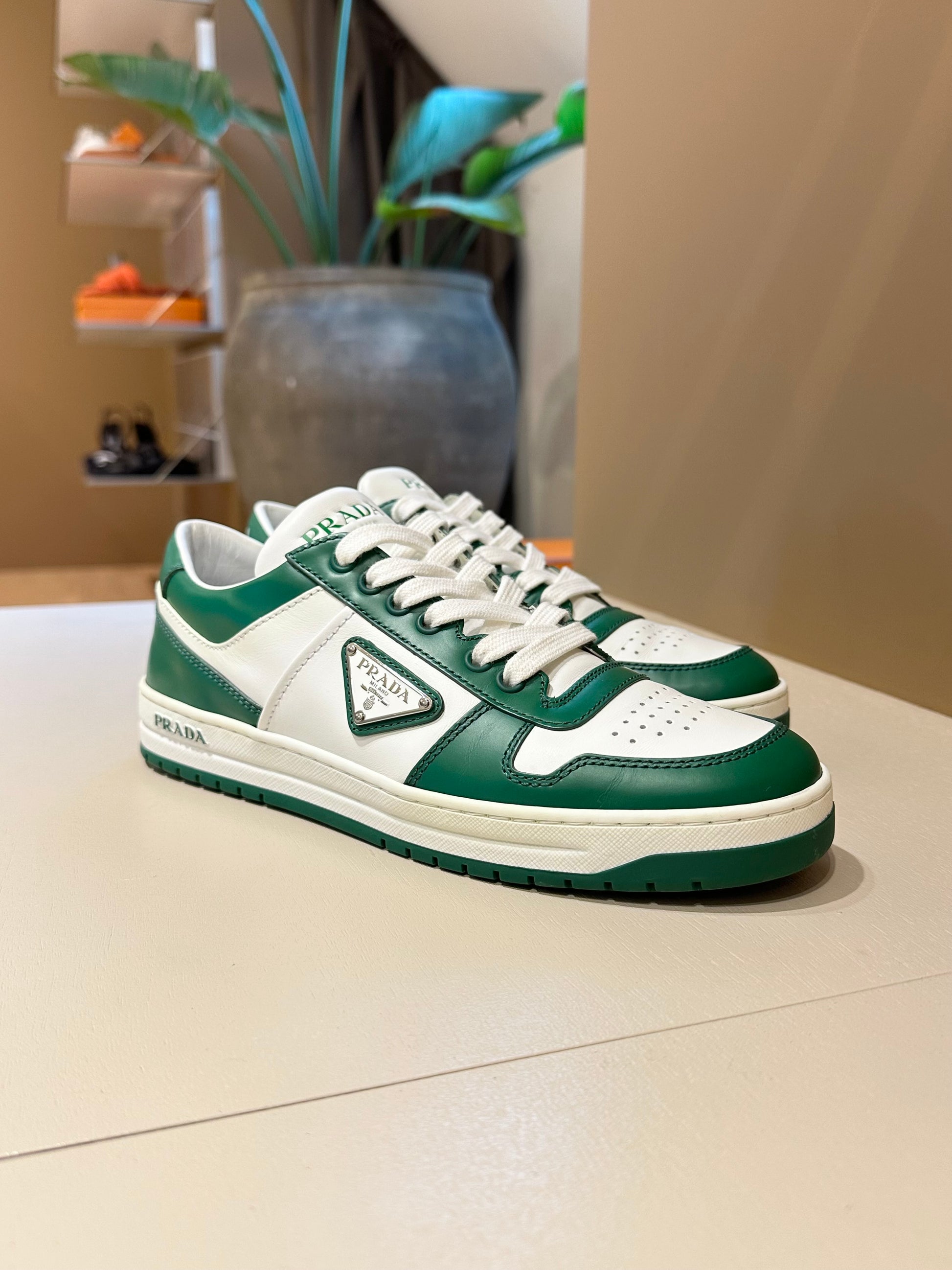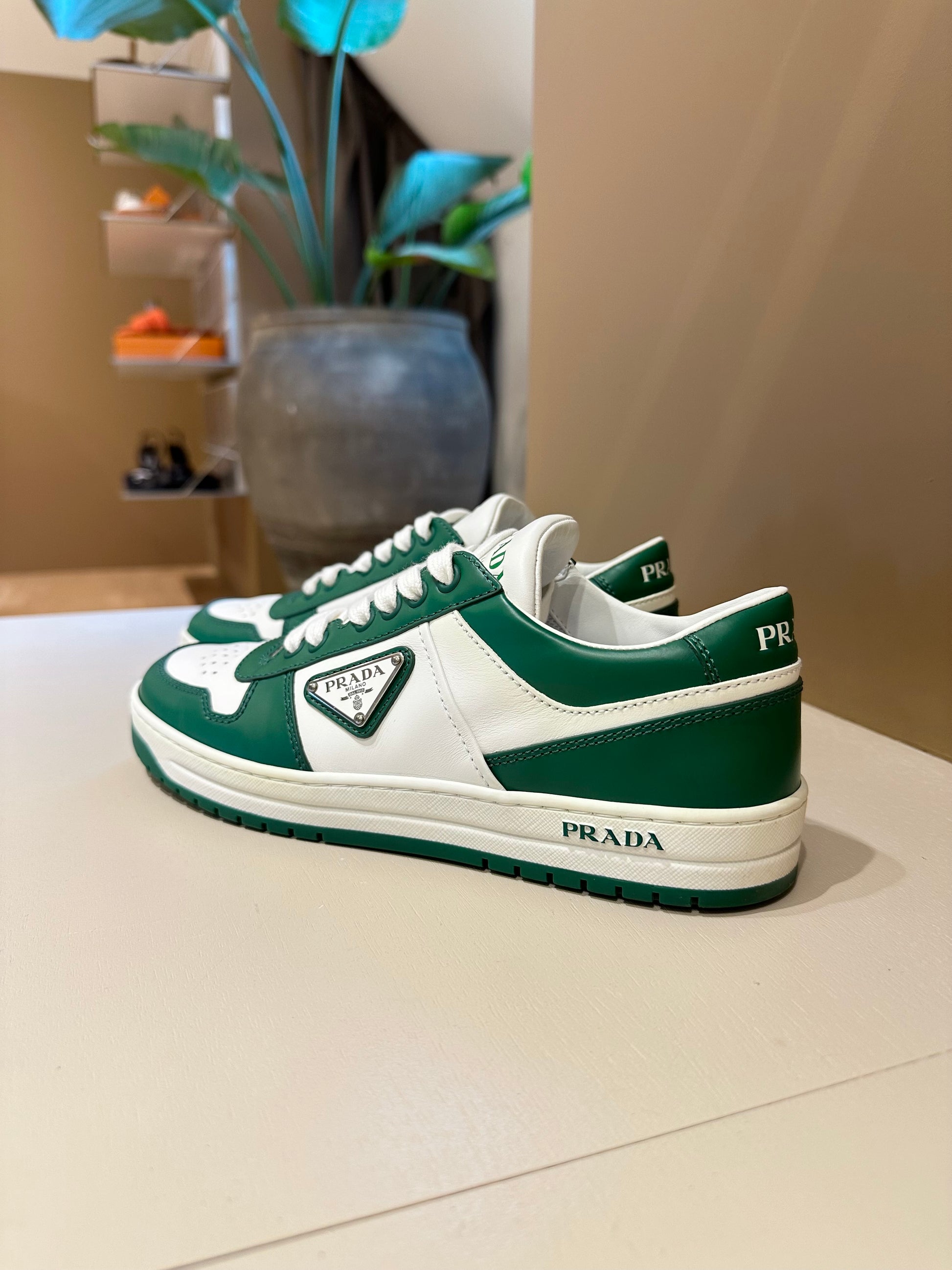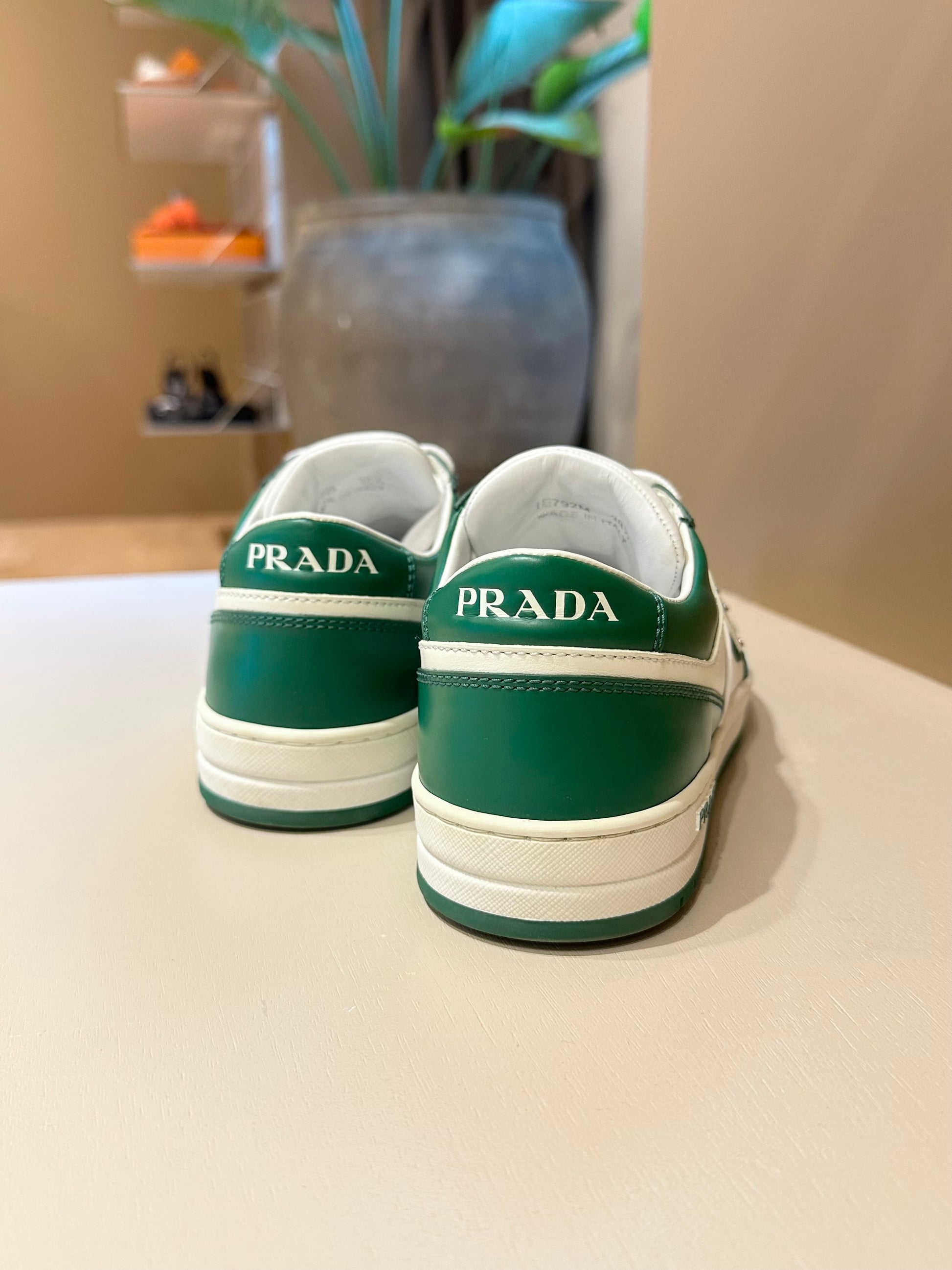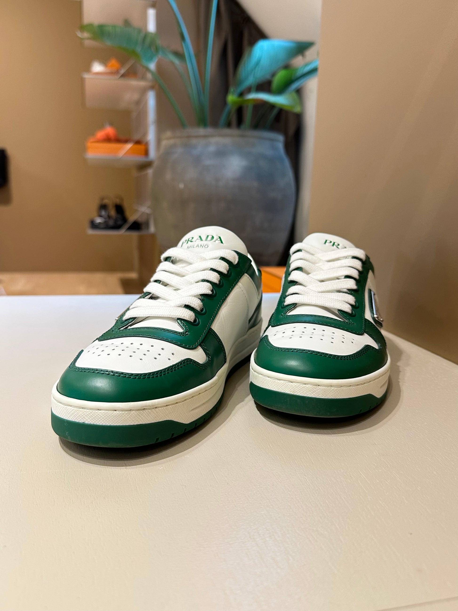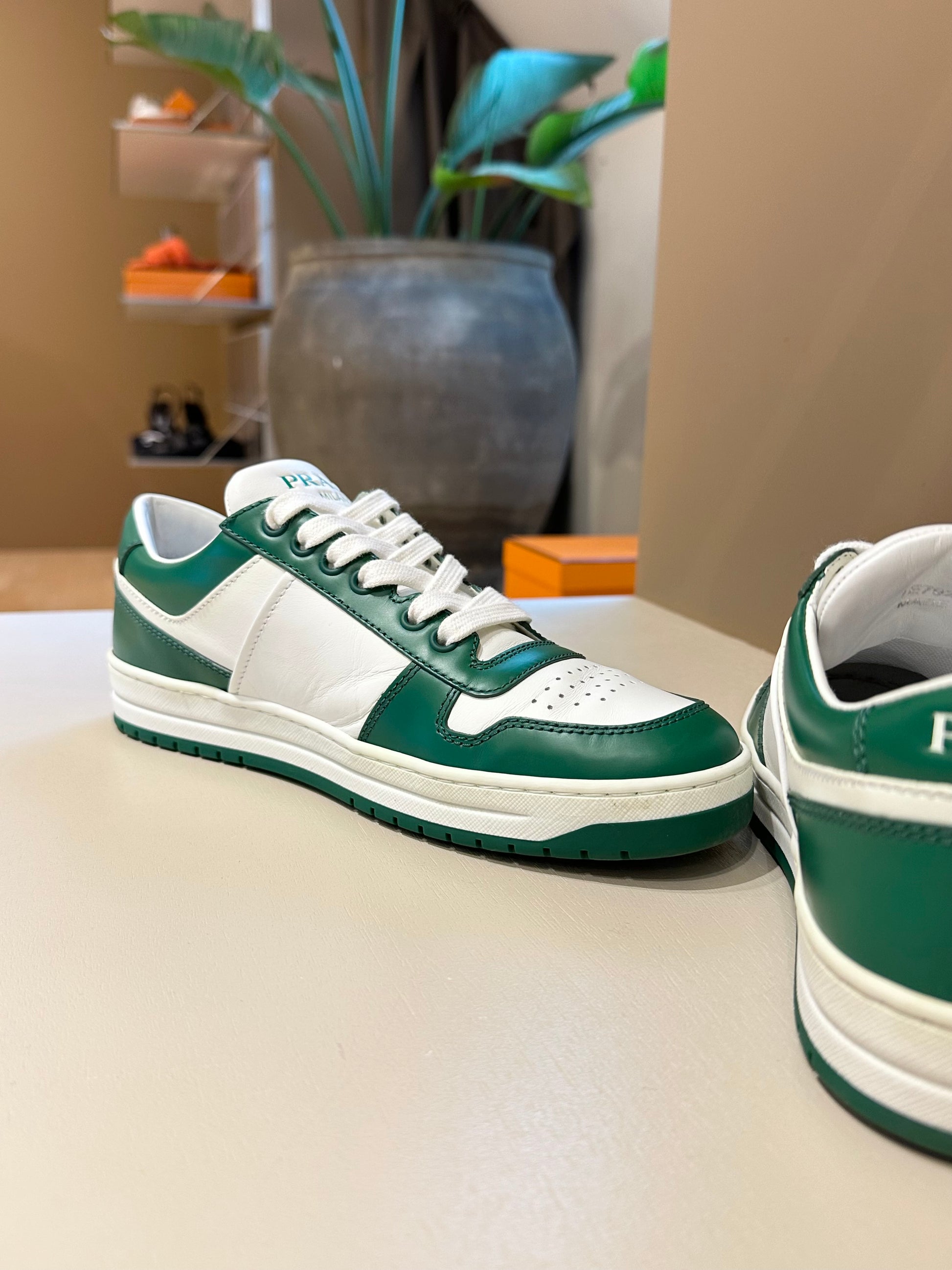 Prada Downtown Leather Sneakers Green/White 38,5