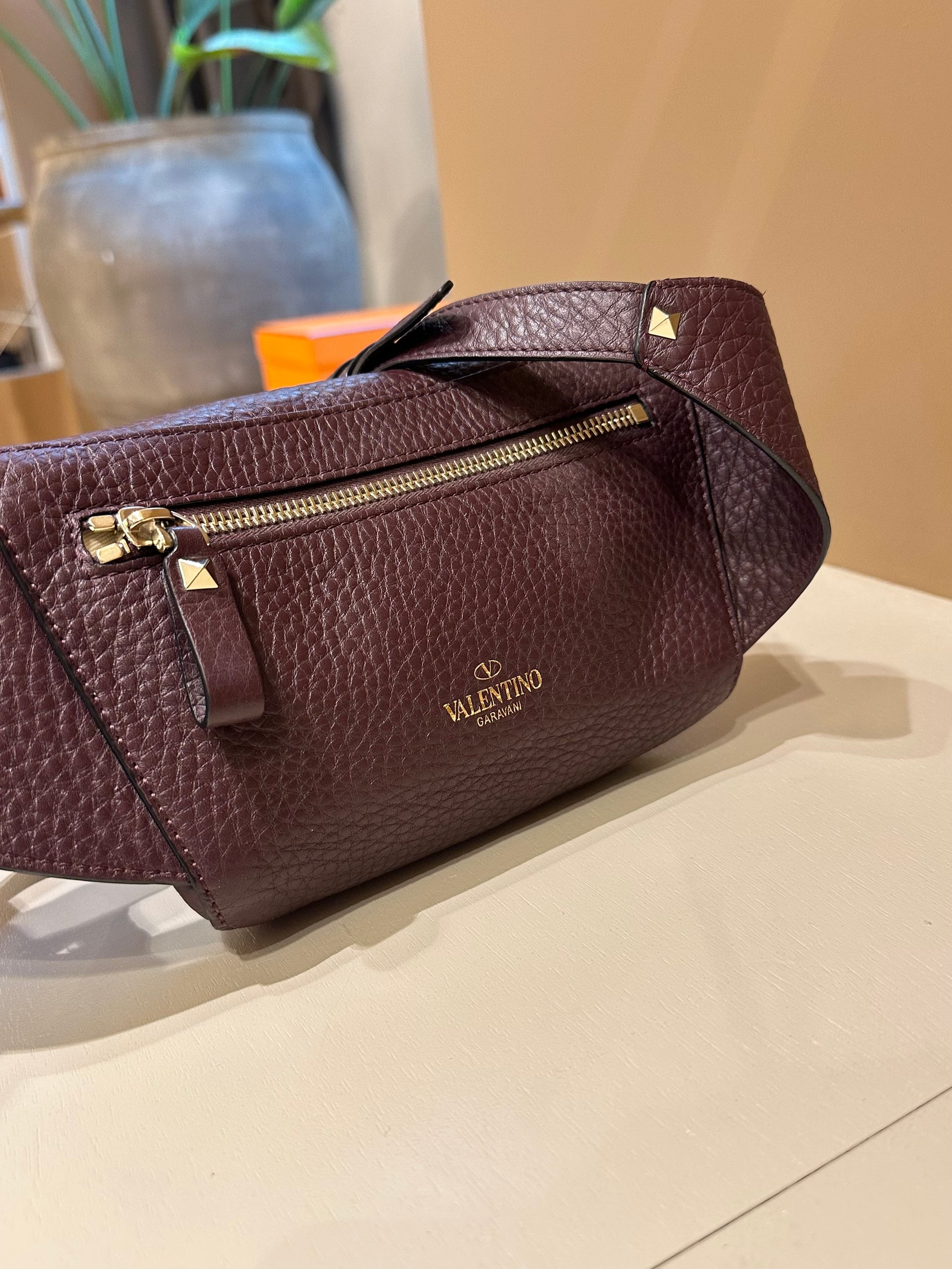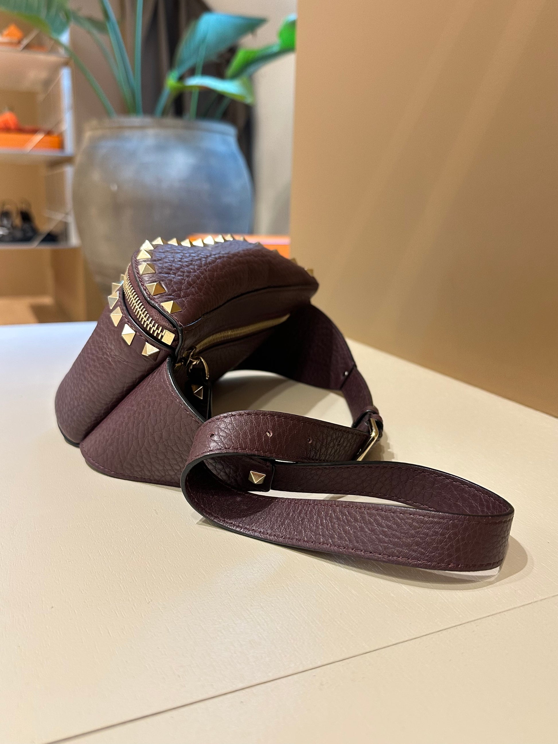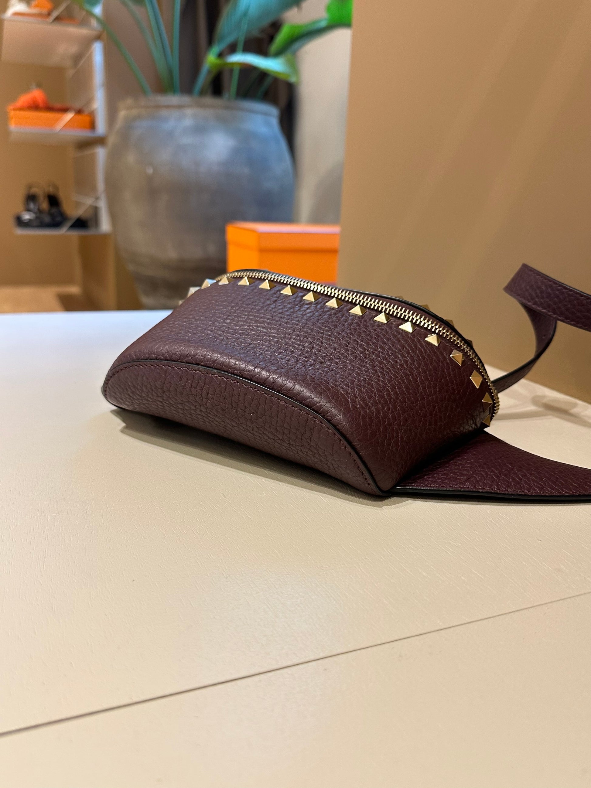 Valentino Garavani Burgundy Rockstud Belt Bag