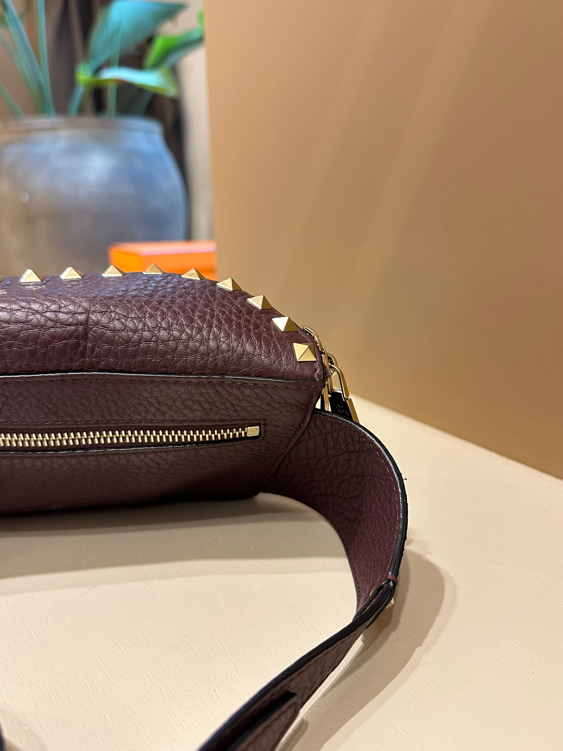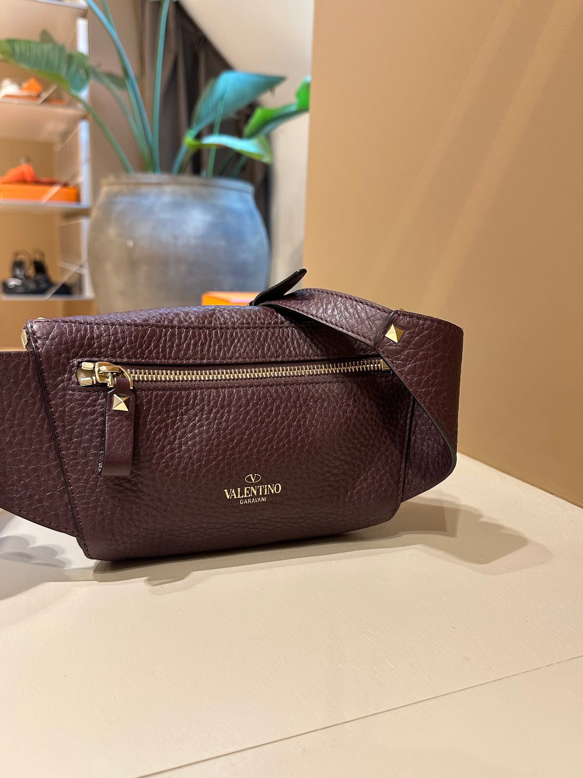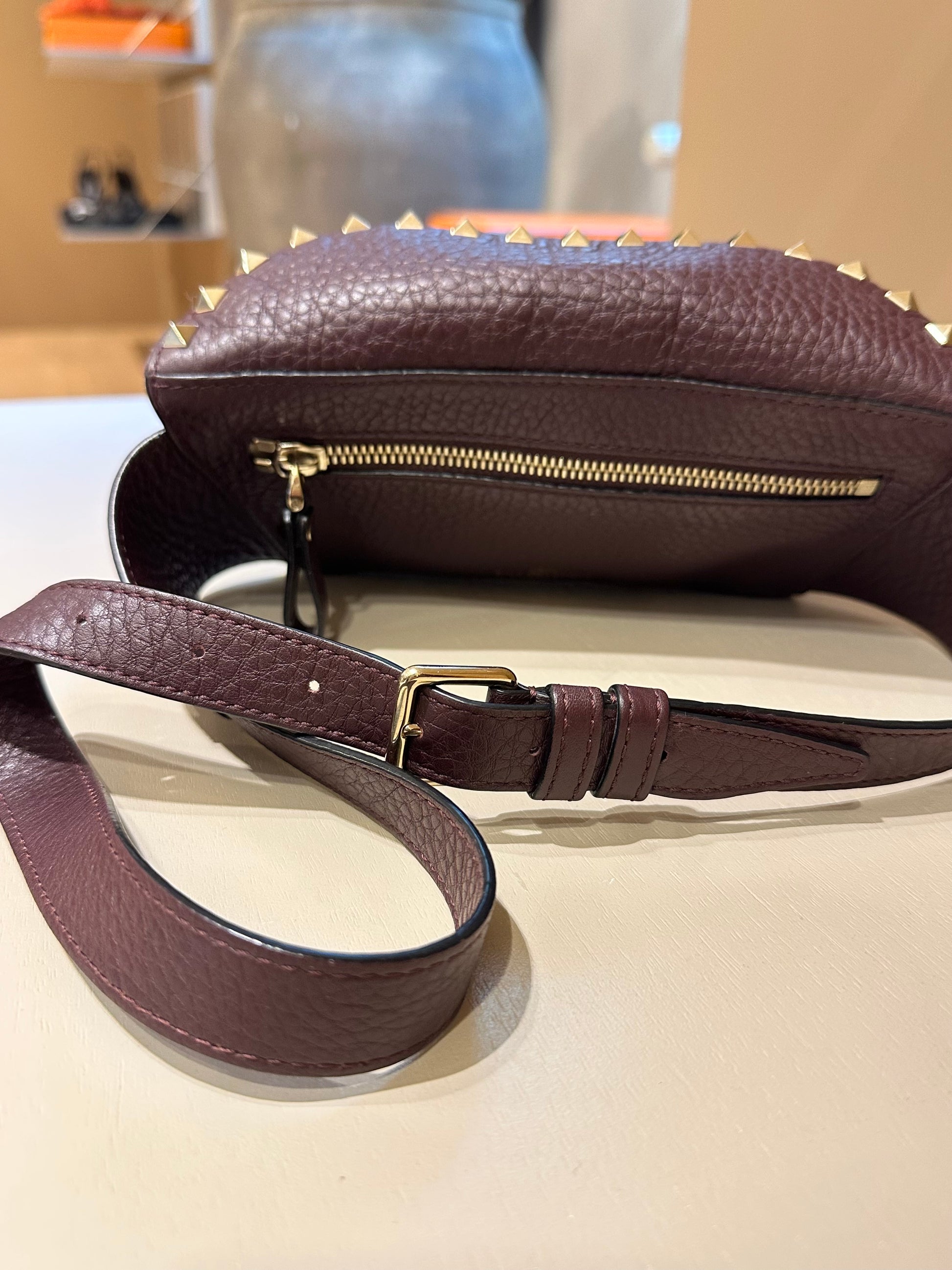 Valentino Garavani Burgundy Rockstud Belt Bag