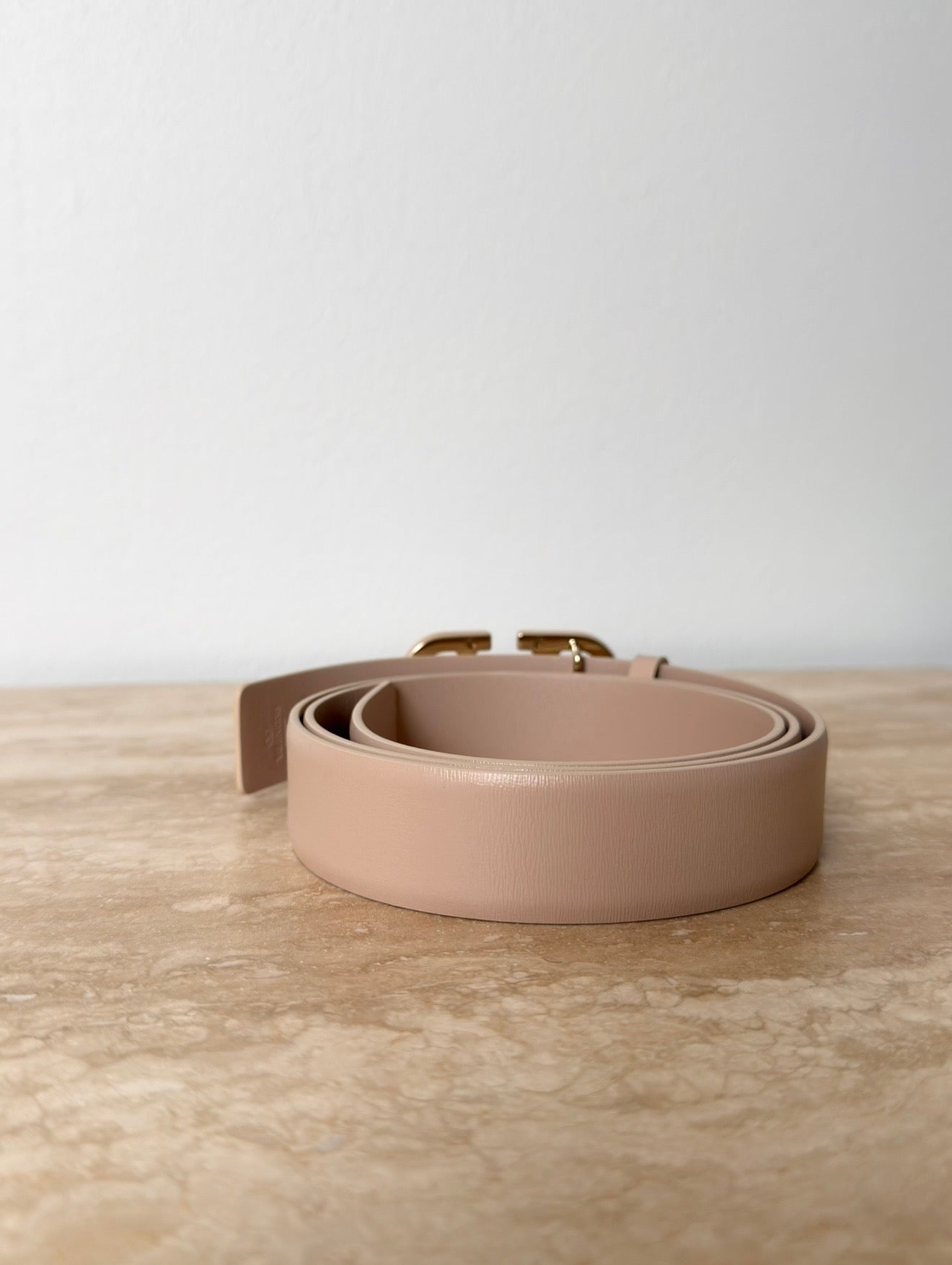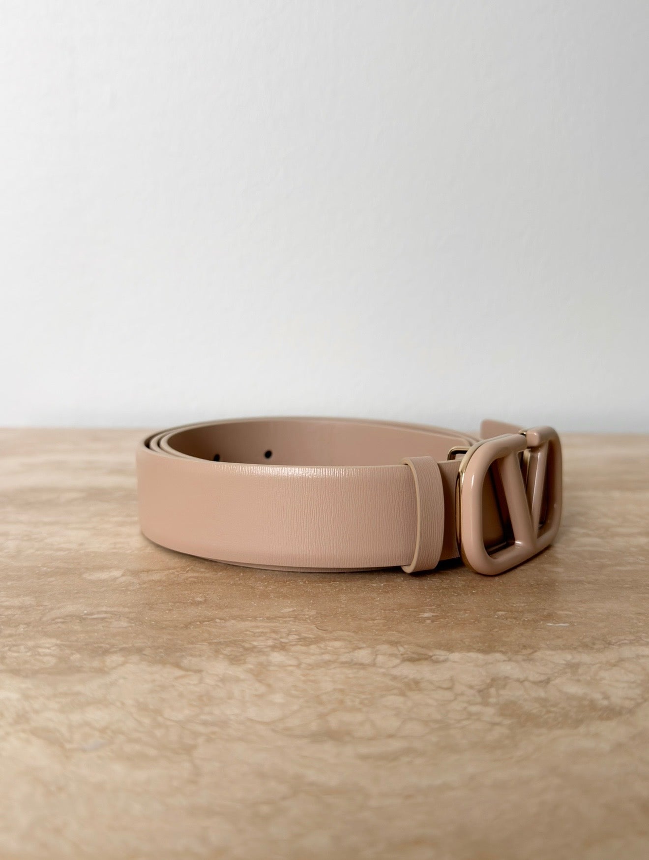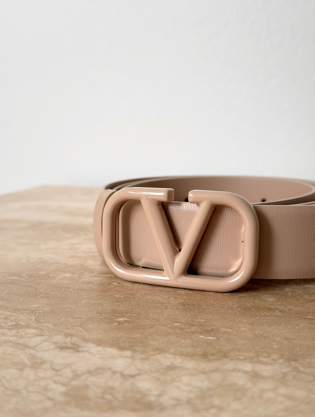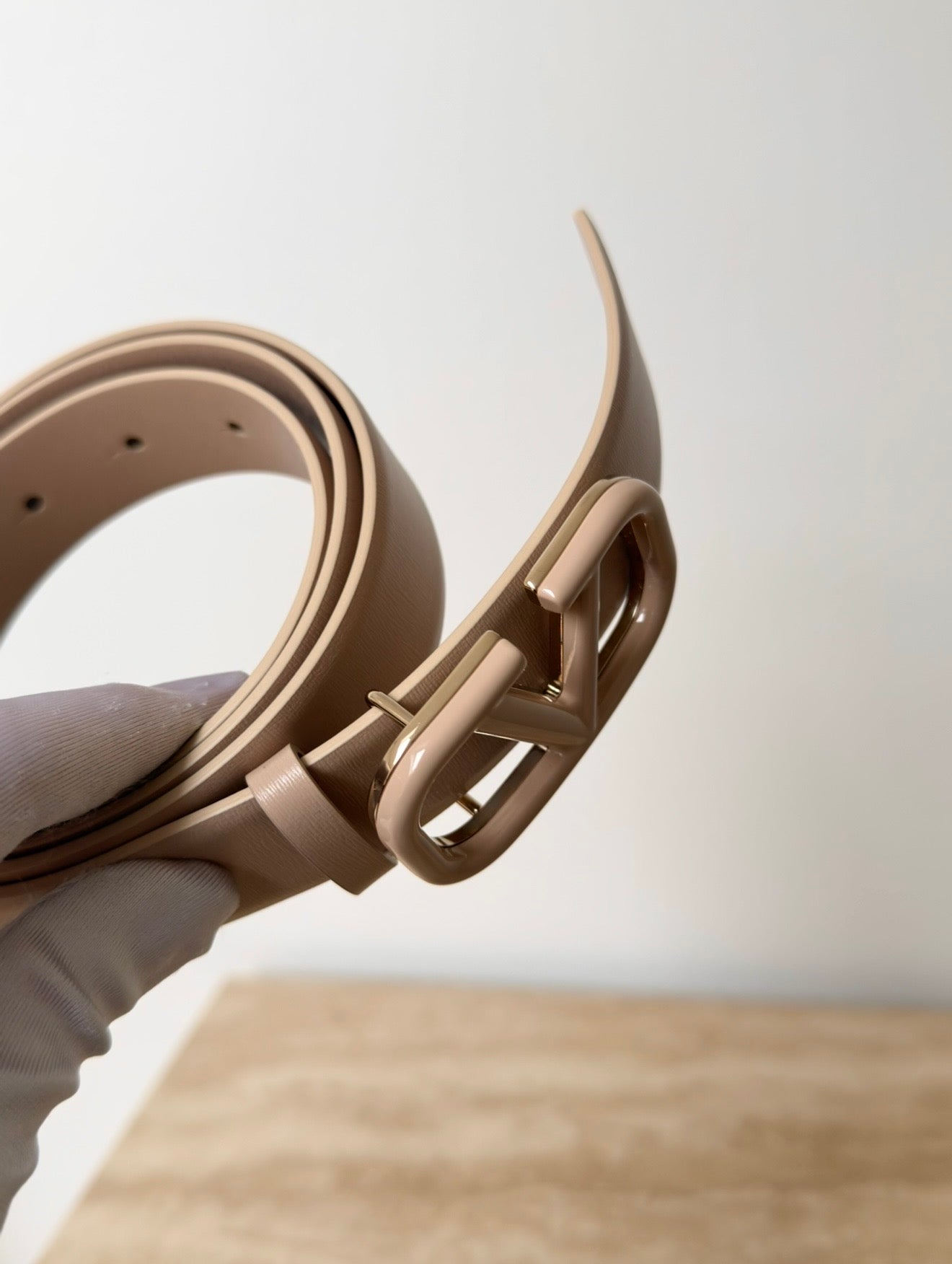 Valentino Garavani Vlogo Signature Leather Belt Powder Rose 95 cm